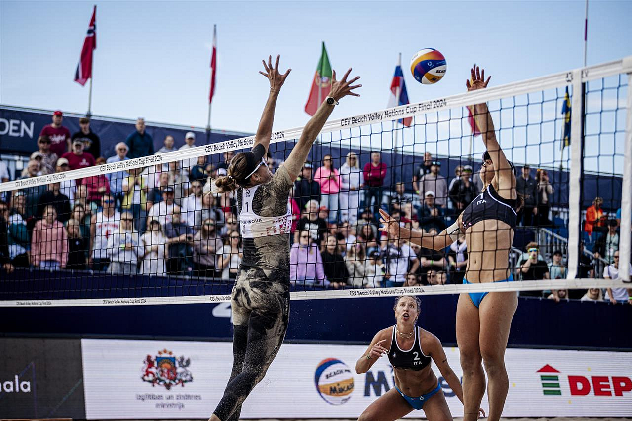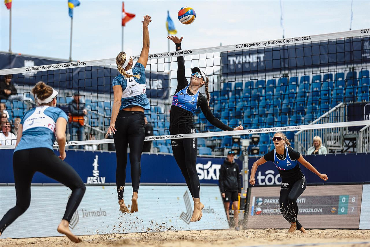 České reprezentantky si na finálovém turnaji Nations Cup v Jurmale zahrají finále. V prvním semifinálovém utkání přejely Kylie Neuschaeferová a Markéta Svozilová druhý italský pár Bianchi / Orsi Toth 2:0 na sety a Barbora Hermannová s Marií-Sárou Štochlovou korunovaly postup do finále perfektně zvládnutou koncovkou druhého setu proti dvojici Bianchin / Scampoli. V neděli čeká Češky finále, ve kterém vyzvou o vstupenku na OH v Paříži reprezentaci Nizozemska.