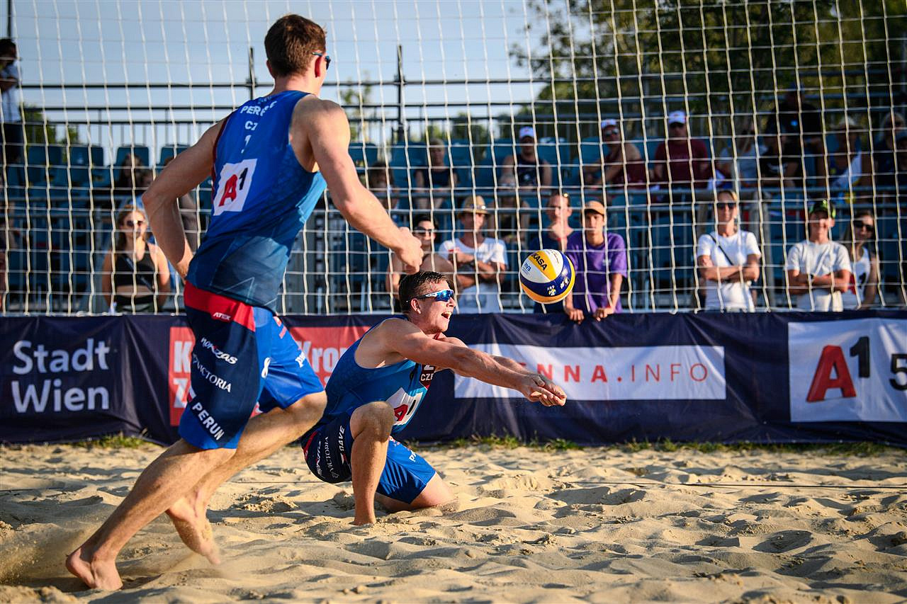 Třetí den mistrovství Evropy ve Vídni byl ve znamení vyřazovacích bojů. Po výhře nad druhým českým párem v turnaji Kvapilová / Williams postoupily Barbora Hermannová a Marie Sára Štochlová mezi nejlepších šestnáct týmů turnaje, kde na ně čekal hvězdný lotyšský pár Kravcenoka / Graudina. Ondřej Perušič s Davidem Schweinerem pošetřili síly vítězstvím ve skupině a o postup do čtvrtfinále vyzvali další star světového volejbalu, tým Samoilovs / Smedins.
