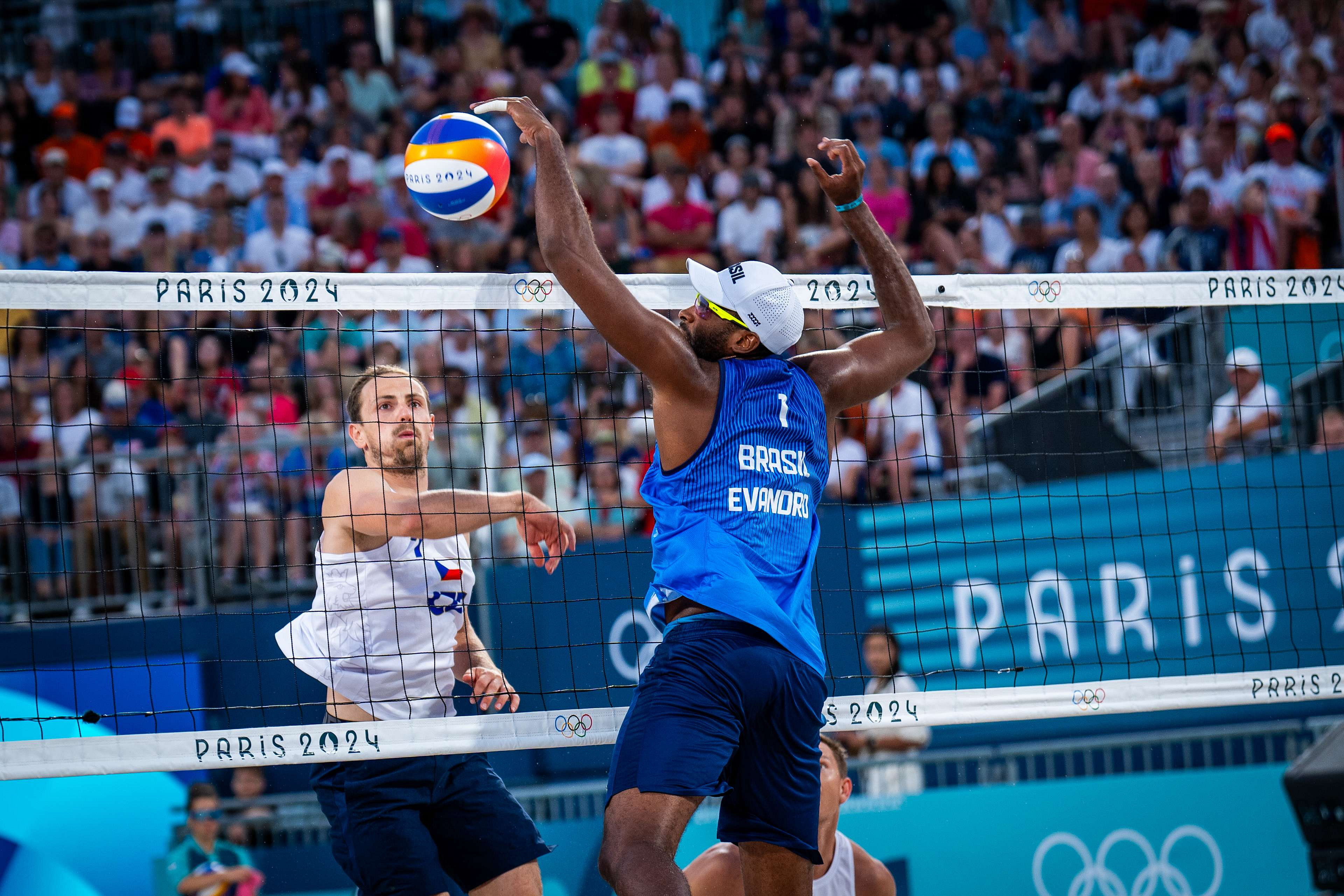 Skoro celý první set byl docela vyrovnaný a na začátku Perun s Davem dokonce mírně vedli, ale vždy když bylo potřeba Evandro roztočil za základní lajnou svá kladiva a i díky své výšce 211 cm vysílal na českou stranu jeden dělový projektil za druhým. Několik z nich dokonce proměnil v eso, ale mnohem důležitější bylo, že po takto tvrdém servisu nepřicházel ideální příjem, který by našim beachvolejbalistům usnadnil útočnou fázi. I tak se kluci drželi až do stavu 15:15. Pak ale přišla tříbodová šňůra Brazilců, kterou se českým reprezentantům nepodařilo smazat.