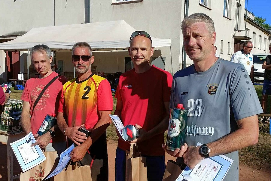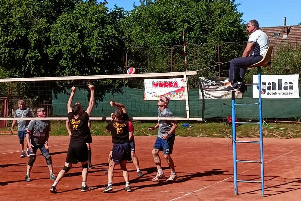 V posledním sobotním utkání se rozhodovalo o vítězi pátého kvalifikačního turnaje mezi vedoucím celkem MČRSV Pivovarem Svijany a třetím týmem v pořadí Sešlostí Brno. Místní usedlíci obsadili všechny lavičky a fandili veteránům v boji o vítězství. Jak řekla paní Ivana, sekretářka místního Sokola – to je neuvěřitelné, jak muži v tomto věku jsou pohyblivě nadaní a dokážou svými výkony nadchnout přihlížející diváky. Myslím si, že příště by tento turnaj měl mít větší popularitu, aby národ viděl, že sportovat na úrovni se dá i ve vyšším věku. Ano, finále i ostatní utkání i přes prudké poryvy větru měly vysokou úroveň. Ale vraťme se k finále. První set byl neuvěřitelně vyrovnaný. Ještě do stavu 23:23 by si nikdo nevsadil na jeho vítěze. První setbol získává Pivovar Svijany a v další nekonečně dlouhé mezihře se jeho hráči radují z vítězství 25:23. V druhém setu Sešlost Brno bojovala o každý míč a po neuvěřitelně přesné nahrávce nejlepšího nahrávače turnaje Luboše Kuchty celkem snad vyrovnává po výsledku 25:19. Po změně stran začal Pivovar Svijany hrát svoji hru a za podpory svého diagonálního hráče Daniela Matošky si v poklidu dokráčel po vítězství 15:6 pro již čtvrté vítězství v letošních kvalifikačních turnajích. Pivovar Svijany v celkové tabulce již vede o pět bodů před Hanáky a jen herní kolaps v posledním kvalifikačním turnaji u Olomouce v Samotiškách a v samotném finále by je mohl připravit o obhajobu titulu, jako se stalo v loňském ročníku ve finále Sešlosti Brno.