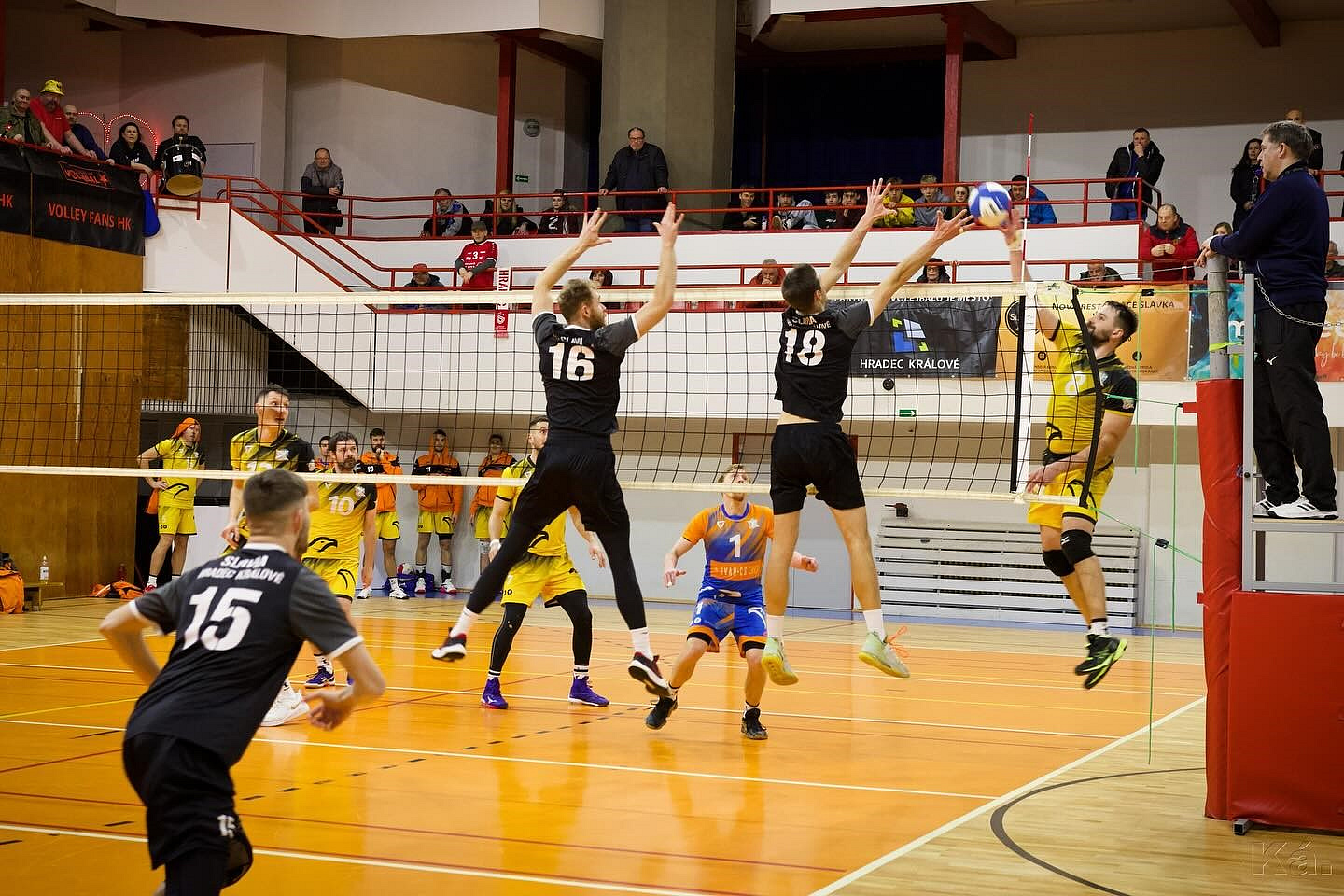 Třetí po základní částí byla Slavia Hradec Králové, o které se říká, že by o účast v ČEZ extralize měla enormní zájem. Hradečtí výrazně posílili příchodem Jiřího Kraffera, což se ukázalo již ve čtvrtfinálovém zápase Chance Českého poháru, kdy senzačně nepustili do Final Four Karlovarsko. Na soupisce mají i Jana Štokra, který sice pověsil již kecky na hřebík, ale proč by třeba nepomohl svému kamarádovi a hrajícímu trenérovi Slavie Aleši Holubcovi k postupu do baráže?