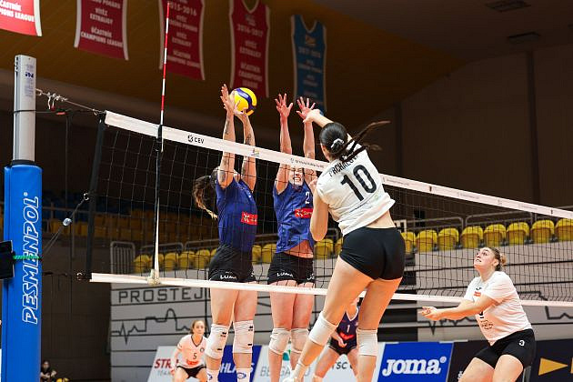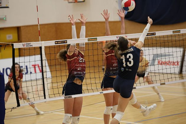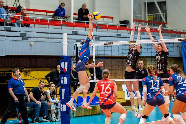 Domácí: Nováková, Širůčková, Šmídová, Silva, Marková, Furdová, libero Koukalová.