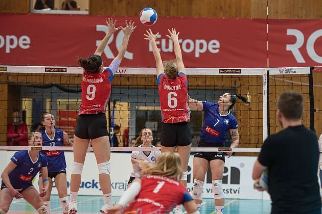 Domácí: Kalinová, Rejmanová, Mandová, Pošívalová, Bezdíčková, Janská, libero Vávrová. Střídaly: Mužíková, Štatská, Sirůčková