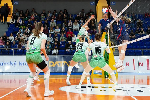 Domácí: Martinelli, Popić, Beranová, Dreisigová, Hrušecká, Valentová, libera Magdinová, Jagelská. Střídaly: Chalupová, Hrušová, Raabová