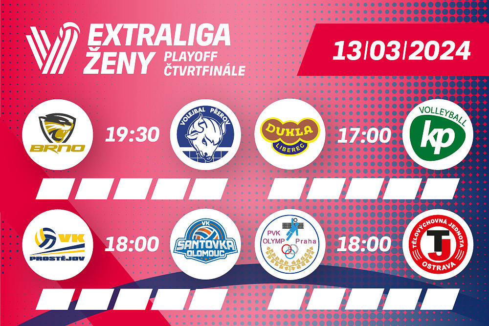 Necelý týden po skončení základní části volejbalové extraligy žen 2023/2024 startuje nejdůležitější část sezóny, play-off. Čtvrtfinálové dvojice určilo konečné pořadí po základní části soutěže.