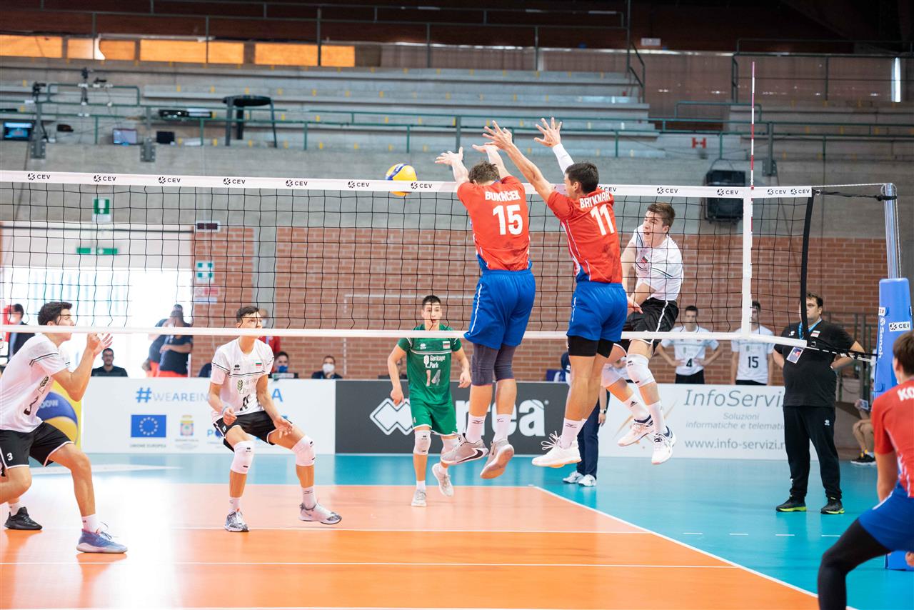Bulhaři dále míchají sestavou, jejich univerzál se přesunuje na smeč, nic nevzdávají. My se ho hned snažíme zaměstnat na příjmu. Pár nepřesností se vloudilo do hry na naší straně, i tak jdeme do vedení (4:7). Bulharské libero špatně přihrává, bohužel se „zraňuje“, musí střídat. Je to smůla… Následuje bodová korekce Bulharů, ale ve správný čas přichází útok středem Bukáčka, ten vzápětí staví na kůle vzorový blok. Náš tým na obraně nepolevuje, dře. Za stavu 7:11 se opět odpočívá. Soupeř zlobí, riskuje, ale zatím nic nezastavuje náš tým, 13:18. Po esu Klajmona a zvýšení na 13:21 přichází na servis Tatarov a na hranici rizika při podání, s přispěním bloku, snižují Bulhaři na 16:21 a trenér Svoboda žádá oddechový čas. Tento taktický prvek zafungoval. Postup do finále proměňuje Klajmon autoritativní smečí.