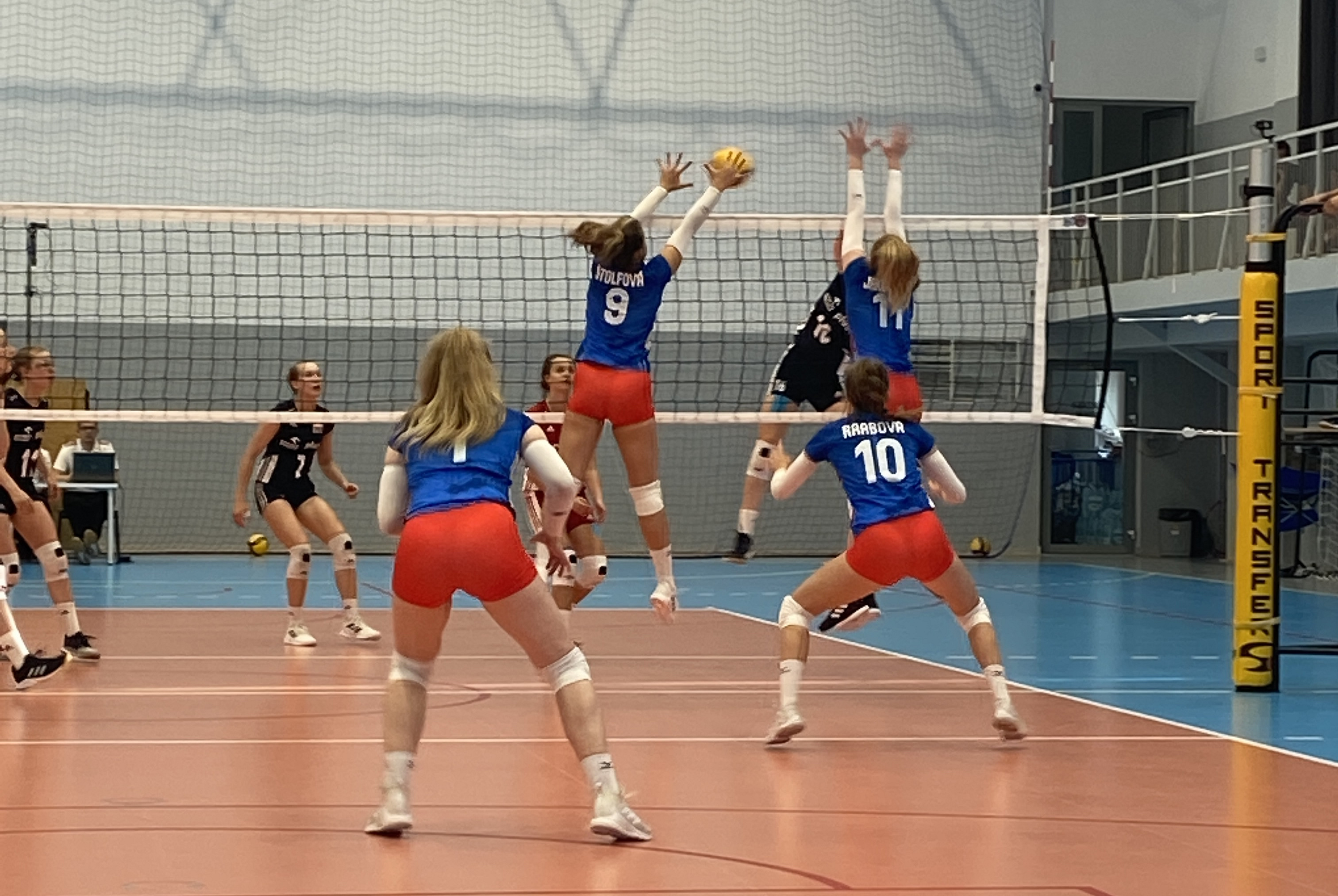 Po náročných dvou sobotních utkáních čekala svěřenkyně Aleše Nováka ještě poslední prověrka s kvalitním soupeřem v neděli dopoledne. Utkání skončilo remízou 2:2 (25:19, 24:26, 10:15 a 15:10).