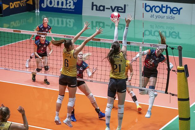 Domácí: Nováková J., Širůčková A., Šmídová P., Silva J., Vyklická K., Furdová N., libero Koukalová A.. Střídaly: Šrámková D., Veselá L.