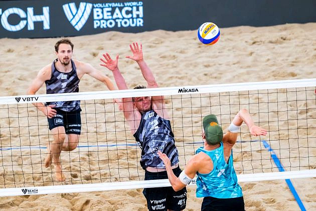 Perušič se Schweinerem vstoupili do základní fáze velice koncentrovaně. Oba vítězné sety proti domácím Němcům J. Sagstetter / B. Sagstetter totiž před koncovkou zcela ovládli a pohodlně zvítězili 2:0 (21:17, 21:18). Ve čtvrtek čekají Peruna s Davem v boji o vítězství ve skupině Kubánci Alayo / Diaz.
