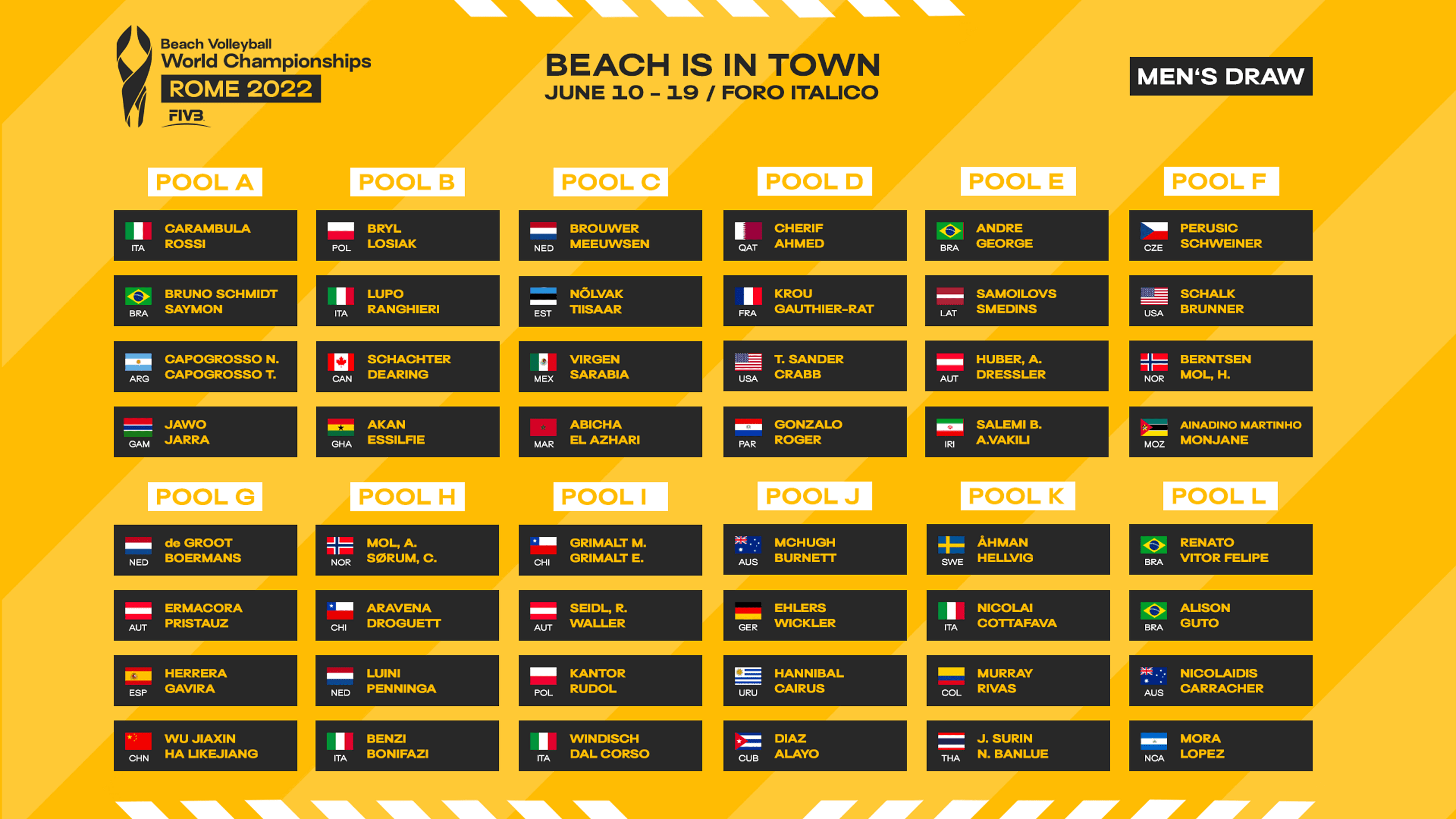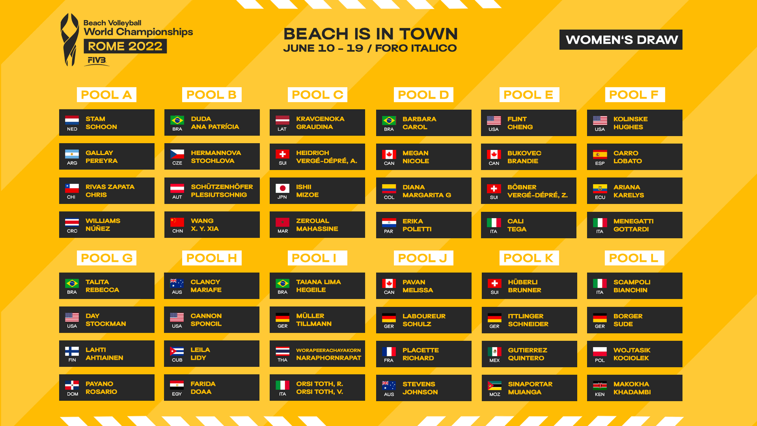 Beachvolejbalové mistrovství světa 2022, které proběhne od 10. - 19. června 2022 v Římě, zná složení základních skupin.