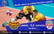 Český mistr VK Dukla Liberec po výborném výkonu těsně podlehl v úvodním utkání základní skupiny Ligy Mistrů silnému polskému mužstvu z Rzeszówa 2:3...