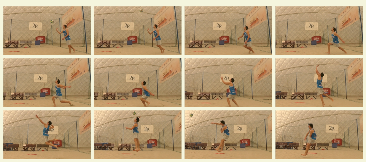 Obrázek 1 – vrchní rotované podání ve výskoku (smečované) - pravák