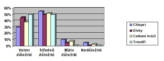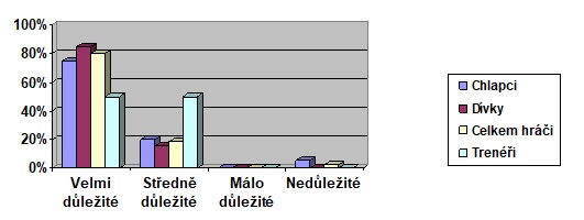 Všichni dotázaní uvedli kamarádské vztahy v týmu jako důležitý motivační faktor. Pro 85 % dívek a 75 % chlapců jsou kamarádské vztahy v družstvu velmi důležité. Na rozdíl od výsledků odpovědí chlapců a dívek, které jsou relativně totožné, se výsledky trenérů liší. Z jejich odpovědí vyplývá, že kamarádské vztahy v týmu nepovažují za tak silný motivační faktor jako samotní hráči.
