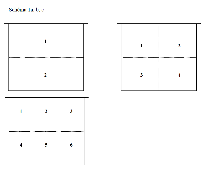 7. Hráči podávají za koncovou čarou do dvou předem vyznačených zón. Postupně zvýšíme jejich počet na čtyři i více (schéma 1a, b, c). Je možné soutěžit, který z hráčů nejdříve zasáhne všechny zóny, nebo který získá co nejrychleji stanovený počet bodů za zasažení určených zón.