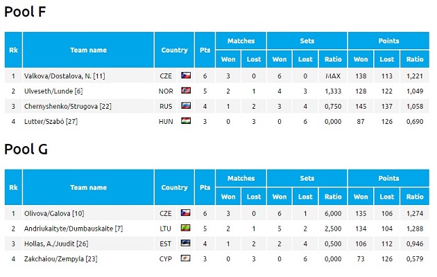 | 16.7. | Valková/Dostálová, N. CZE [11] | Strag/Gruszczynska POL [5] 2-0 (21-17, 21-16) |