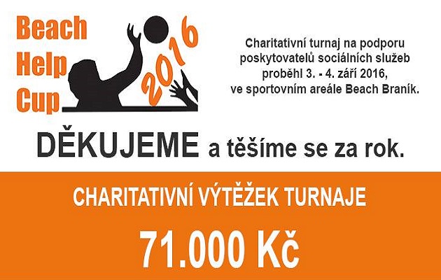 Tak jako v každém městě, tak i v Praze, žije velké množství lidí, kteří potřebují nějakou formu pomoci. Nejde jen o osoby se zdravotním postižením, seniory a bezdomovce, ale o mnoho dalších, kteří jsou nedobrovolně odkázání na některou ze sociálních služeb. A právě poskytovatelé sociálních služeb, ti co přímo pomáhají, si podle nás také zaslouží, aby jim někdo pomohl a podpořil je v jejich činnosti. A proto pořádáme každoročně charitativní turnaj v plážovém volejbale smíšených dvojic Beach Help Cup s cílem podpořit organizace, které v Praze poskytují registrované sociální služby. Letošní již druhý ročník tohoto charitativního turnaje proběhl 3. – 4. září 2016 ve sportovním areále Beach Braník v Praze 4.