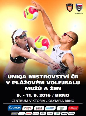 Ve dnech 9. až 11. září 2016 se v Brně uskuteční UNIQA mistrovství ČR v plážovém volejbale mužů a žen. Turnaj se odehraje v krásném Centru Viktoria, ve kterém se nachází celkem osm beachvolejbalových kurtů, z toho tři zastřešené. Část zápasů, včetně těch finálových, je na programu na nedaleké Olympia pláži u obchodního centra Olympia, která vznikla na jaře toho roku. Diváci se tak mohou těšit na napínavý volejbal, výborně obsazený turnaj - v mužské části například na nasazené jedničky Perušič/Schweiner, Jana Dumka s Martinem Léblem či na Petra Beneše a Přemysla Kubalu. Mezi ženami nebude chybět Kristýna Kolocová s Michalou Kvapilovou či letošní mistryně Evropy do 18 let Marie Sára Štochlová a Martina Maixnerová. Občerstvení je rovněž zajištěno, včetně grilovaného selátka.