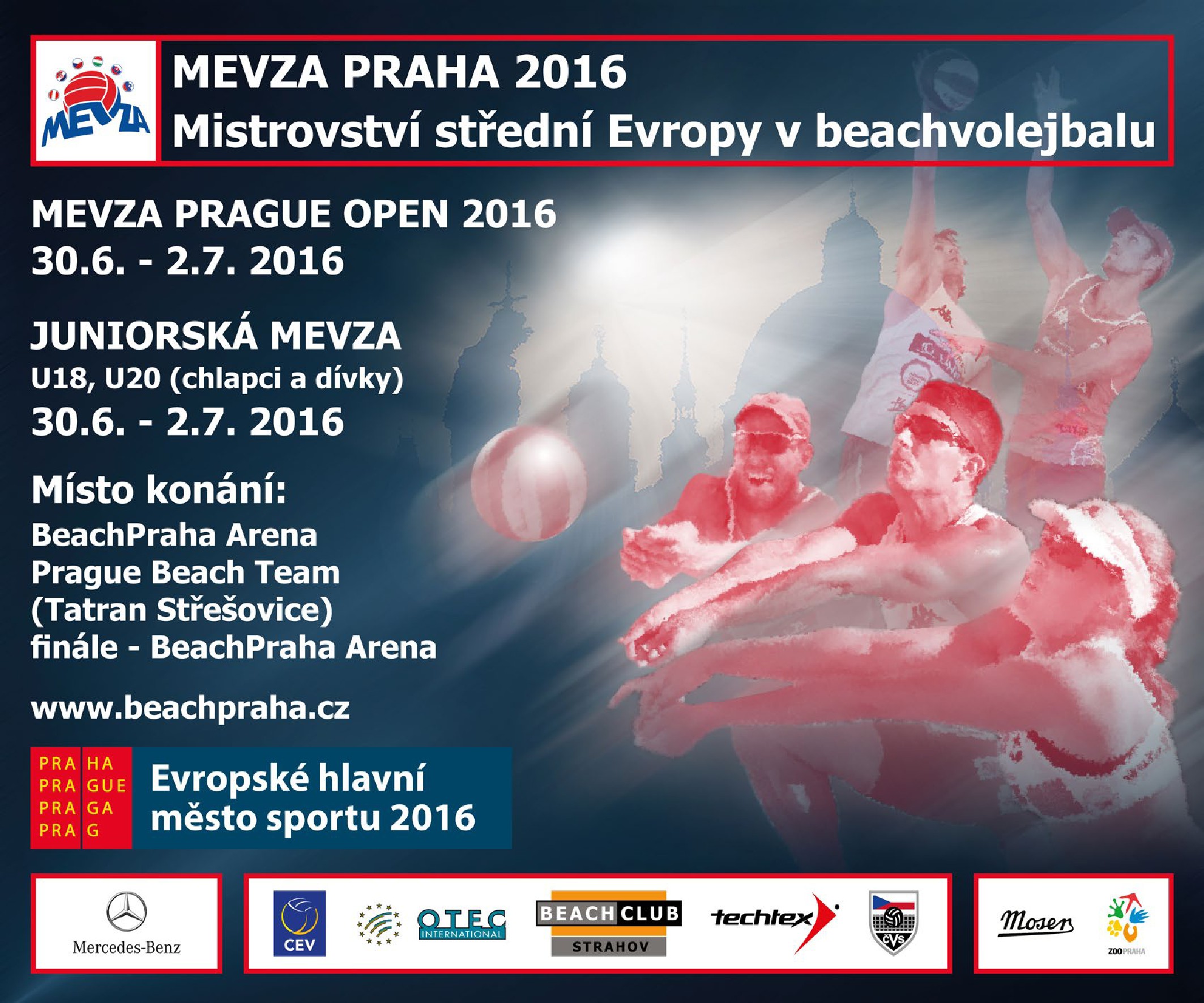 Nejlepší hráči sedmi zemí střední Evropy a Izraele se utkají ve dvou seniorských kategoriích (muži, ženy) a čtyřech juniorských kategoriích na konci června v Praze na Strahově. Letní seriál akcí v Praze v rámci uděleného titulu PRAHA – EVROPSKE MĚSTO SPORTU 2016 přinese v v posledních dvou červnových dnech až do 2. 7. 2016 nejen nabitý program, ale i jedinečné divácké zážitky. Od středy 29. 6. se v areálu Beachclubu Strahov – BeachPraha Arena a na dvorcích PragueBeach teamu ve Střešovicích odehraje historicky první turnaj MEVZA PRAHA – mistrovství střední Evropy v plážovém volejbale 2016 organizované jako turnaj evropské volejbalové federace CEV.