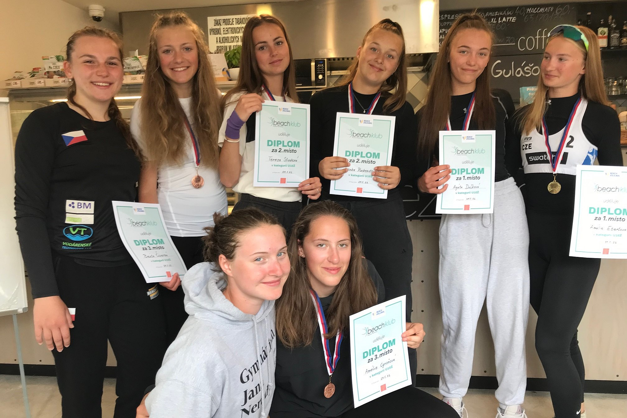 O den dříve si své zápasy odehrály holky. Těch bylo o něco méně než kluků, ovšem i tak byl k vidění krásný beachvolejbal. Zlato vybojovaly v napínavém třísetovém zápase brněnské hráčky Kališová / Králíková, na které o fous nestačila dvojice Molnárová / Řechtáčková. Zápas o bronz proběhl mezi domácími týmy, kde v závěru zvítězily Kinterová s Rauchertovou, které porazily pár Malivánková / Rejchrtová.