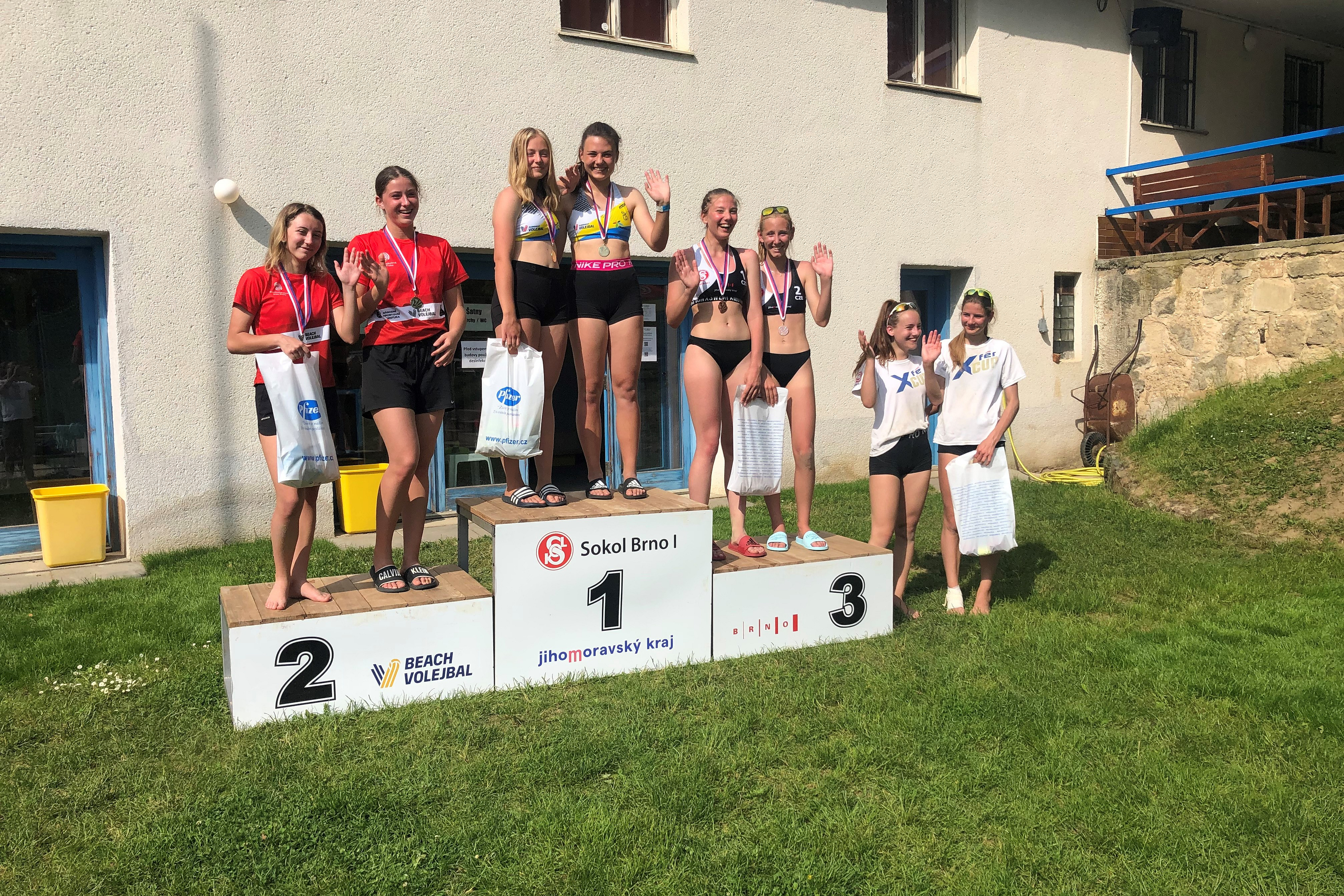 První červnový víkend se na brněnském Sokoláku uskutečnil Kadetský pohár v kategorii kadetek, tedy dívek do 18 let. Startovní listina byla výrazně ovlivněna velmi pozdním zveřejněním turnaje, ale i přesto se do Brna přijelo zúčastnit deset dvojic z celé České republiky. Pod dohledem dvou zkušených rozhodčích se hrály dvě skupiny po pěti týmech systémem každý s každým. Do semifinále postupovaly první dva týmy z obou skupin, zbytek týmů dohrál zápasy o umístění. V prvním semifinále se střetly domácí Sokolky Monika Kleiblová a Natálie Přibylová s pražskou dvojicí Adéla Adamcová/Sára Císařová. Druhé semifinále hrála další domácí dvojice Tina Kališová a Denisa Králíková proti Marii Westphalové a Nikol Friedlové z Olomouce. V obou semifinálových utkáních byly úspěšnější mimobrněnské dvojice, boj o bronz byl tedy soubojem domácích dvojic. V tomto zápase útěchy byly úspěšnější Tina Kališová s Denisou Králíkovou a odnesly si tak bronzové medaile. Souboj o vítězství v turnaji byl nakonec jasnou záležitostí a zlato si odnesla olomoucká dvojice Marie Westphalová s Nikol Friedlovou.