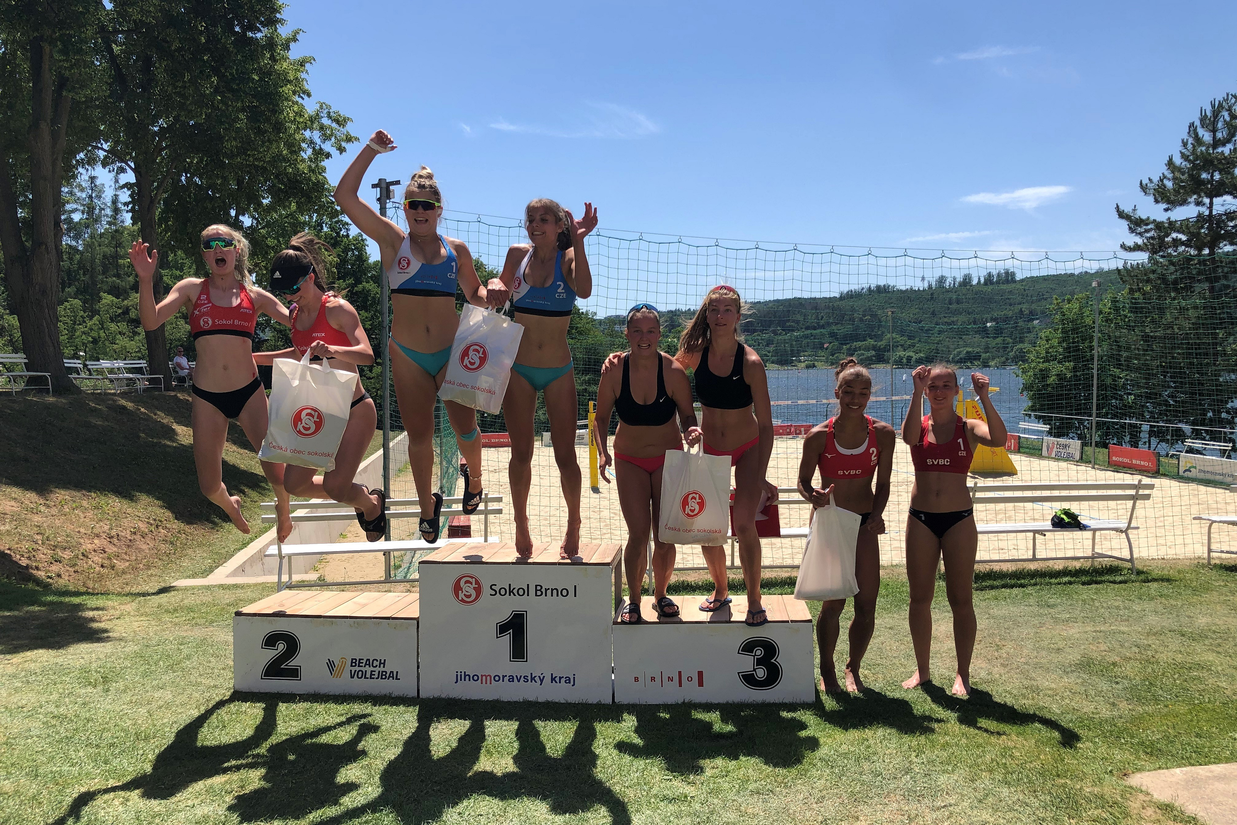 V polovině června se na brněnském Sokoláku uskutečnil Český pohár juniorek U20, tedy dívek do 20 let. Startovní listina byla ovlivněna turnajem ČP žen v Nymburce, kterého se zúčastnily nejlepší juniorské dvojice, ale i přesto se do Brna přijelo zúčastnit 23 dvojic z celé České republiky. Pod dohledem zkušených rozhodčích se první hrací den odehrálo 36 zápasů, ovlivněných velmi náročným počasím. Do semifinále postoupily dvě domácí dvojice Sokola Brno I a dvě dvojice z Prahy. V prvním semifinále se střetly domácí Sokolky Sabina Matoušková / Alžběta Jagelská s dvojicí Mariana Tomasová / Adéla Nečesaná z SVBC. Druhé semifinále hrála další domácí dvojice Tereza Lajkebová s Veronikou Kleiblovou proti Róze Mrázové s Laurou Kubištovou z Beachklubu Ládví. V obou semifinálových utkáních byly úspěšnější domácí dvojice, boj o zlato byl tedy soubojem domácích dvojic. V tomto zápase o titul zvítězila dvojice Tereza Lajkebová a Veronika Kleiblová. Děkujeme rozhodčím, organizátorům ze Sokola Brno I i hráčkám, že dobře zvládly turnaj ve velice náročných podmínkách za tropického počasí.