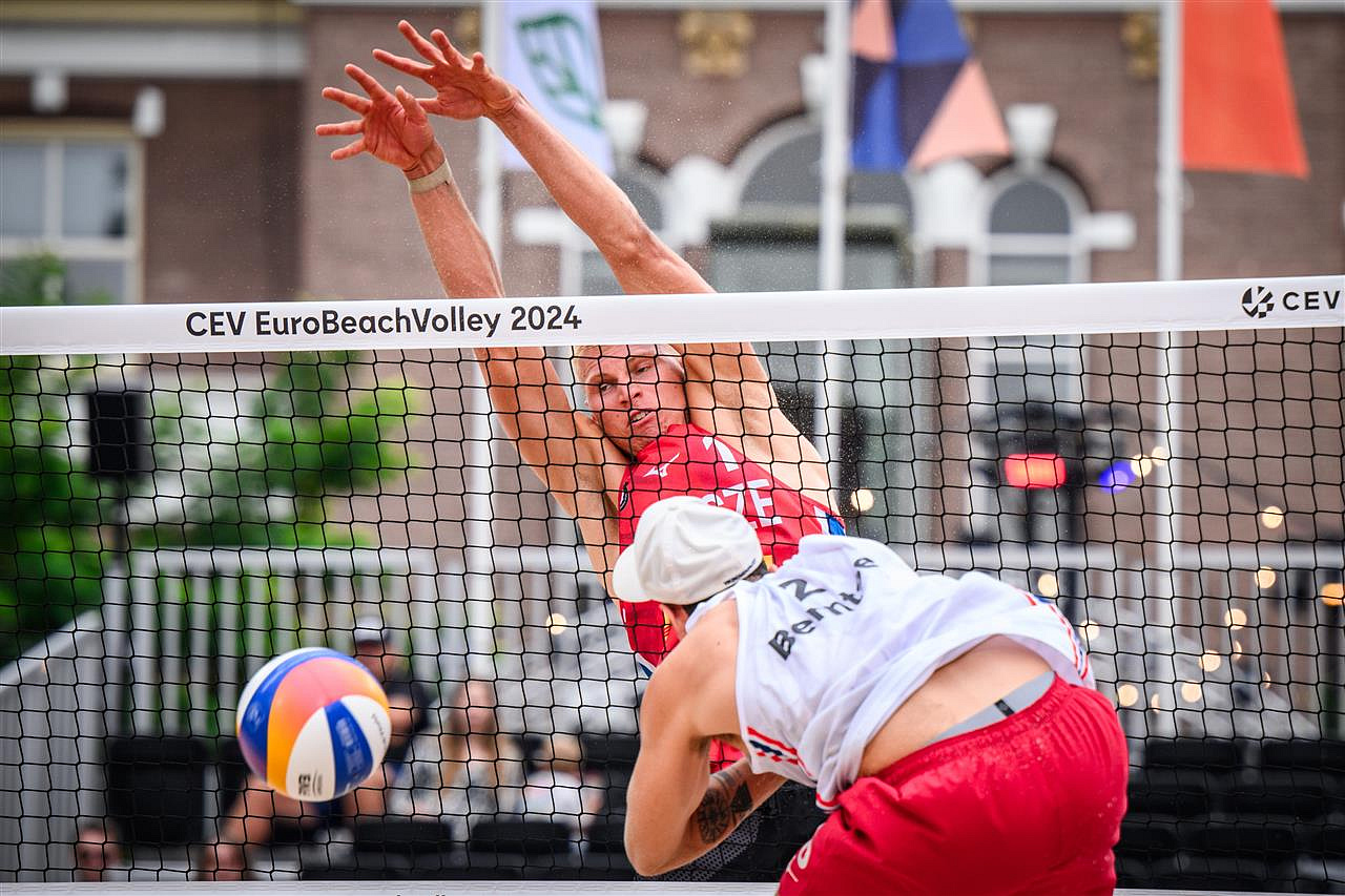 Mužský turnaj startoval teprve ve středu a tak mají čeští borci na kontě pouze první zápasy. Vítězně vstoupili do ME v Nizozemsku Jakub Šépka s Jiřím Sedlákem, kteří senzačně otočili koncovku tie breaku proti domácímu páru Brouwer / Meeuwsen a připsali si tak veledůležitou výhru 2:1 (24:26, 21:16, 16:14). Tomáš Semerád s Janem Dumkem si také zahráli tie break, ale ve zkrácené hře proti Norům Berntsen / Mol se jim bohužel nedařilo a nakonec jej prohráli – 1:2 (22:24, 21:19, 7:15).