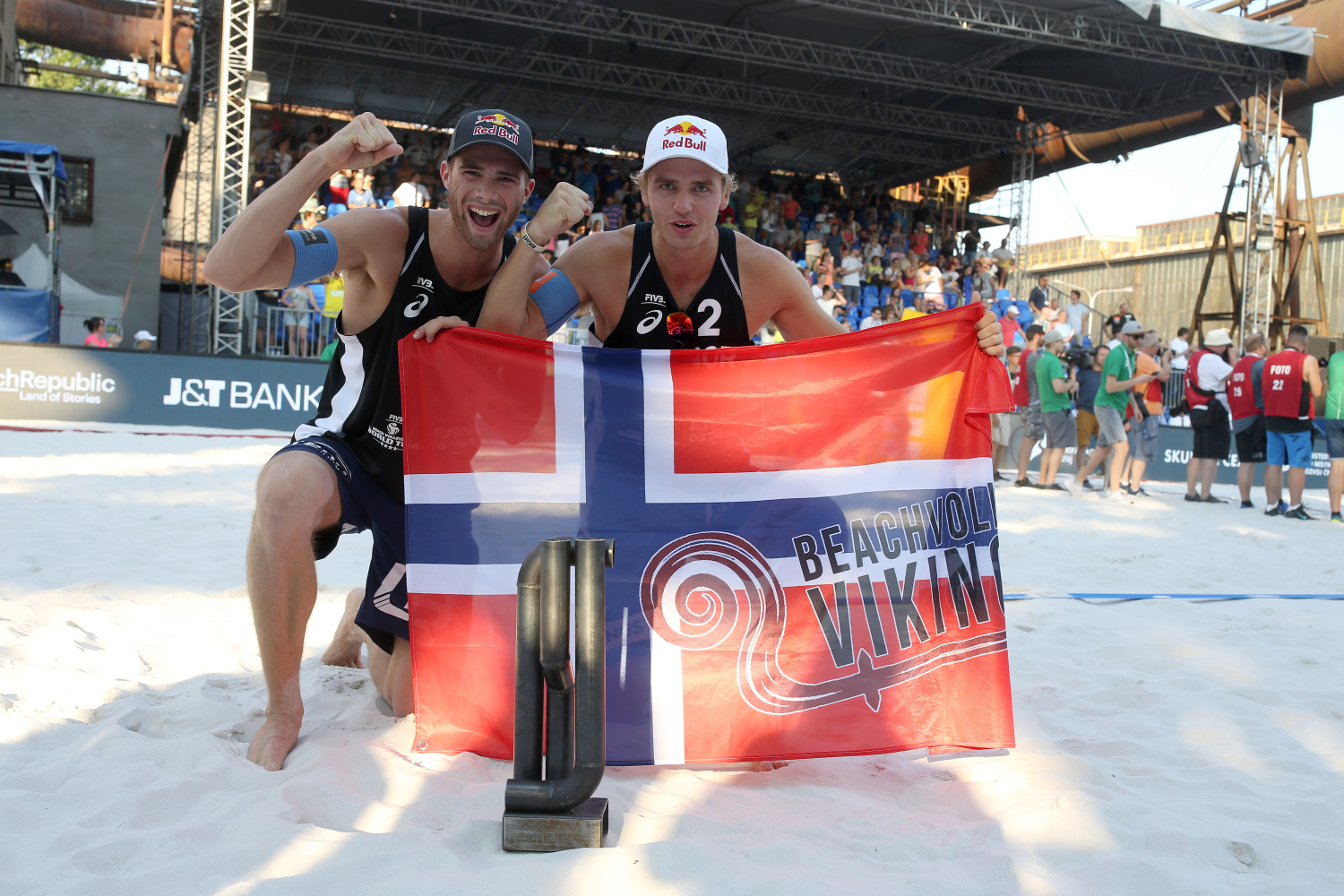 A to také udělali. Diváci ve vyprodané aréně v Dolních Vítkovicích viděli ve finále špičkový plážový volejbal, který se nakonec protáhnul až do tiebreaku. V prvním setu čeští hráči výborně bránili a zařídili si dostatečný náskok, který vedl k výhře 21:17. Ve druhé sadě však norská dvojice předvedla, co z ní činí světové jedničky, a tentokrát si s Čechy poradila poměrem 21:15. „Češi hráli v prvním setu skvěle. My jsme se trápili na side-outu, čehož oni využili. Museli jsme spolu začít víc mluvit a do dalšího setu změnit taktiku,“ řekl Sörum. O vítězi rozhodnul až závěrečný tiebreak. Větší sílu nakonec prokázal norský tým, Mol předvedl v koncovce několik parádních bloků a Čechy do vedení už nepustil. Perušič se Schweinerem sice za obrovské podpory diváků dokázali odvrátit čtyři mečboly, ten pátý však velkolepé finále pod vysokými pecemi ukončil. „Opravdu jsme si dnešní finále užili. Pro tyto zápasy žijeme, bylo to epické,“ nešetřil chválou Mol. „Tento turnaj zůstane navždy jedním z našich nejoblíbenějších. Celý týden jsme si moc užili, přišlo nás podpořit spoustu lidí a opravdu se těšíme, až se sem za rok vrátíme,“ dodal Sörum.