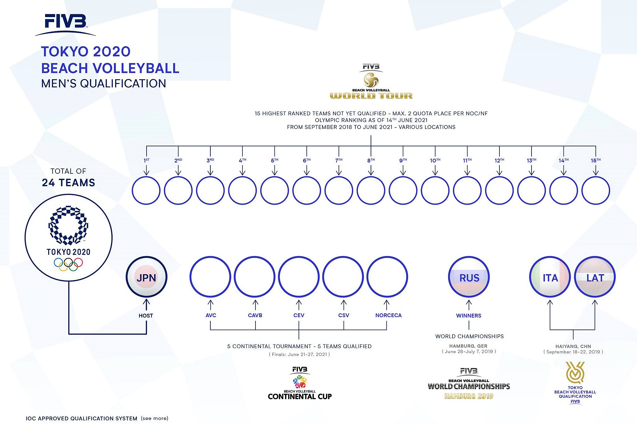 Pro některé páry se po více než roce znovu rozjela beachvolejbalová sezona, která bude zakončena olympijským turnajem v Tokiu. Co se týče konceptu kvalifikace, je docela složitý. Olympijský turnaj je pouze pro 24 párů v každé kategorii a místo v něm si můžete zajistit hned několika způsoby. Pojďme se tedy podívat na každý z nich.