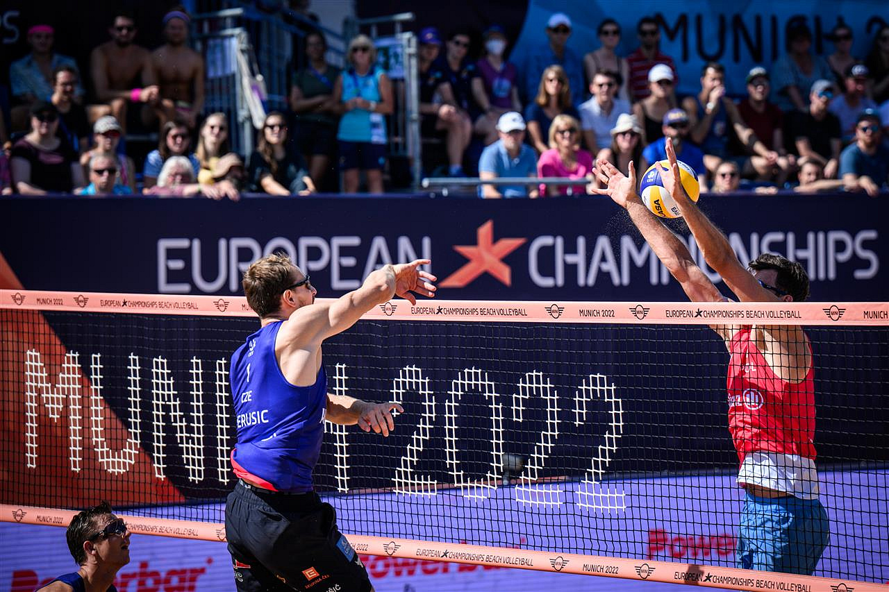 Perun s Davem stáli v semifinále ME v Mnichově před velkou výzvou. V cestě do finále jim totiž stáli Poláci Bryl s Losiakem, kteří je ve čtvrtfinále posledního turnaje Elite 16 v Hamburku vyřadili. Je pravda, že v té době byl Ondra Perušič chvilku po covidu a David Schweiner měl čerstvě po zranění palce na smečařské ruce. Tentokrát jako by všechny bolístky nasbírané během dlouhé sezony rázem zmizely a Perun s Davem předvedli možná svůj nejlepší výkon v sezóně. Poláky doslova sestřelili z kurtu. Davův blokařský koncert vždy nabídl pár dalších přídavků, které se v podobě brutálních poklic snášely na hlavy soupeřů. Perun zase čaroval v poli a s jistotou sobě vlastní dohrával bodovky jako na běžícím páse. Výsledek 2:0 (21:15, 21:11) na této úrovni sice vypadá jako překlep, ale opak je pravdou a naši borci senzačně postoupili do vysněného finále.