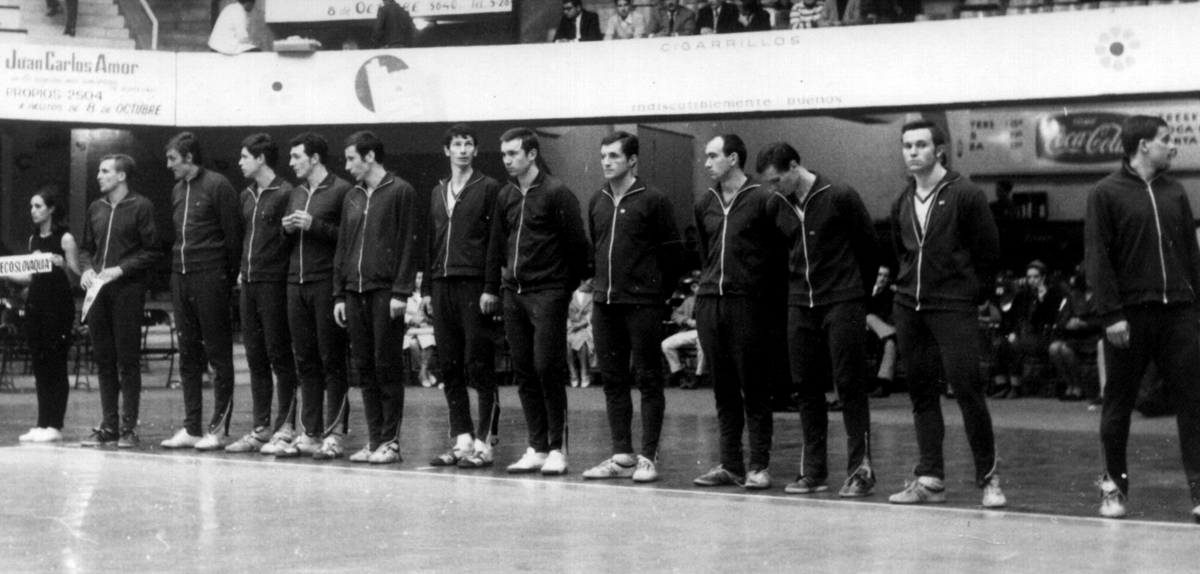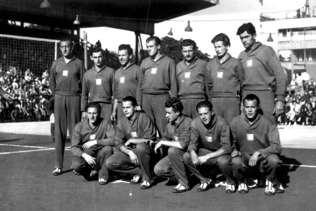V roce 1949 bylo řízení našeho sportu (na základě tzv. sjednocení tělovýchovy v roce 1948) svěřeno nejmasovější organizaci - Československé obci sokolské a volejbalová mistrovství republiky se stala současně přebory ČOS. V kategorii mužů získal titul Sokol Kolín, v ženách Sokol Pražský. Stěžejní událostí roku se staly premiéry MS mužů a ME žen, které FIVB svěřila Československu a oba turnaje byly sehrány v září 1949 na 3 kurtech, postavených na ploše ještě nezastřešeného Zimního stadionu v Praze na Štvanici. V turnaji mužů startovalo 10 zemí (jen z Evropy), v turnaji žen 7 zemí a finálové zápasy shlédlo na 14 tisíc diváků. Oba naše výběry vybojovaly stříbrné medaile, když podlehly pouze reprezentantům SSSR (muži 1:3, ženy 0:3). Na vloženém snímku vicemistři světa – volejbalisté ČSR. Zleva stojí Reicho, Soukup, Matiášek, K. Brož, Fučík, Schwarzkopf a Tesař, dole zleva Bouchal, J. Brož, Votava, Paldus a Mikota.
