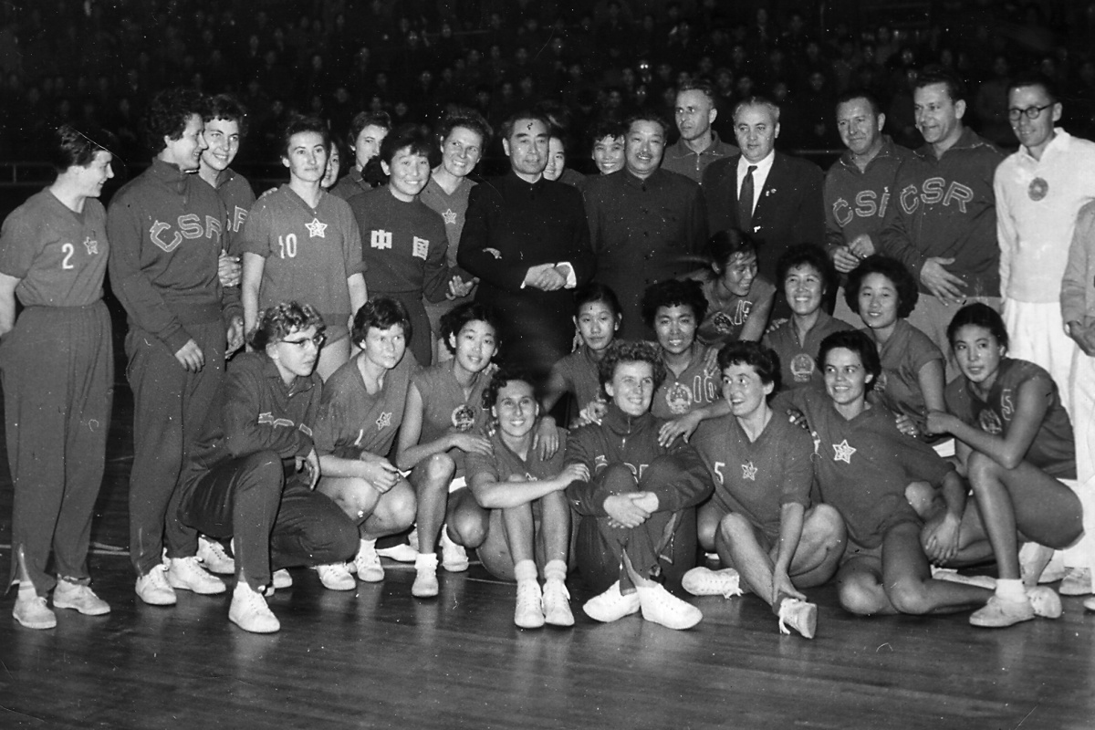 V roce 1959 řídil náš sport již Čs. svaz tělesné výchovy a sportu (ČSTV, ustavený v roce 1957a fungující až do roku 2013, kdy byl nahrazen Českou unií sportu (ČUS). Volejbalovému M-ČSR kralovali v tomto roce muži Slavie VŠ Praha a ženy Dynama Praha. Pro muže VŠ to byl již čtvrtý titul v řadě a zasloužila se o něj sestava: Z. Humhal, Chour, Kemel, Malý, Musil, Perušič, Petr, Pospíšil, Purnoch, Stolařík, Šmídl a Špelina pod vedením trenéra B. Chvály. Pro ženy Dynama Praha to byl titul první a získala jej sestava: Kofroňová, Paclíková, Příhodová, Šormová, Špelinová, Vacková-Synovcová a Žižkovská pod vedením trenéra Rabana. Stěžejní akcí roku se pro volejbalisty ČSR stal Turnaj tří kontinentů v Paříži v září 1959, na kterém skončili druzí za Sověty. Startovalo 9 zemí, z toho sedm z Evropy, americký kontinent zastupovali reprezentanti Brazílie, asijský ČLR. Úspěšným se stal rok také pro akademiky ČSR, kteří na Letní světové univerziádě v Torinu vybojovali zlaté medaile s titulem akademických mistrů světa. Ženská reprezentace, vedená J. Češpivou, absolvovala v listopadu historicky první zájezd do ČLR a KLDR. Nalétaly a najezdily při něm přes 20 tis. kilometrů, navštívili sedm měst a před návštěvami až 12 tis. diváků sehráli 9 utkání s bilancí 7 vítezství a 2 porážek. V oficiálních mezistátních utkáních s ČLR a KLDR zvítězily, poraženy byly nejlepšími klubovými celky Číny – v té době armádní BAI a Šanghaj. Na vloženém snímku naše a čínské volejbalistky při setkání s čínským premiérem, soudruhem Čou-en-lajem (uprostřed v černém oblečení se sepnutými pažemi).