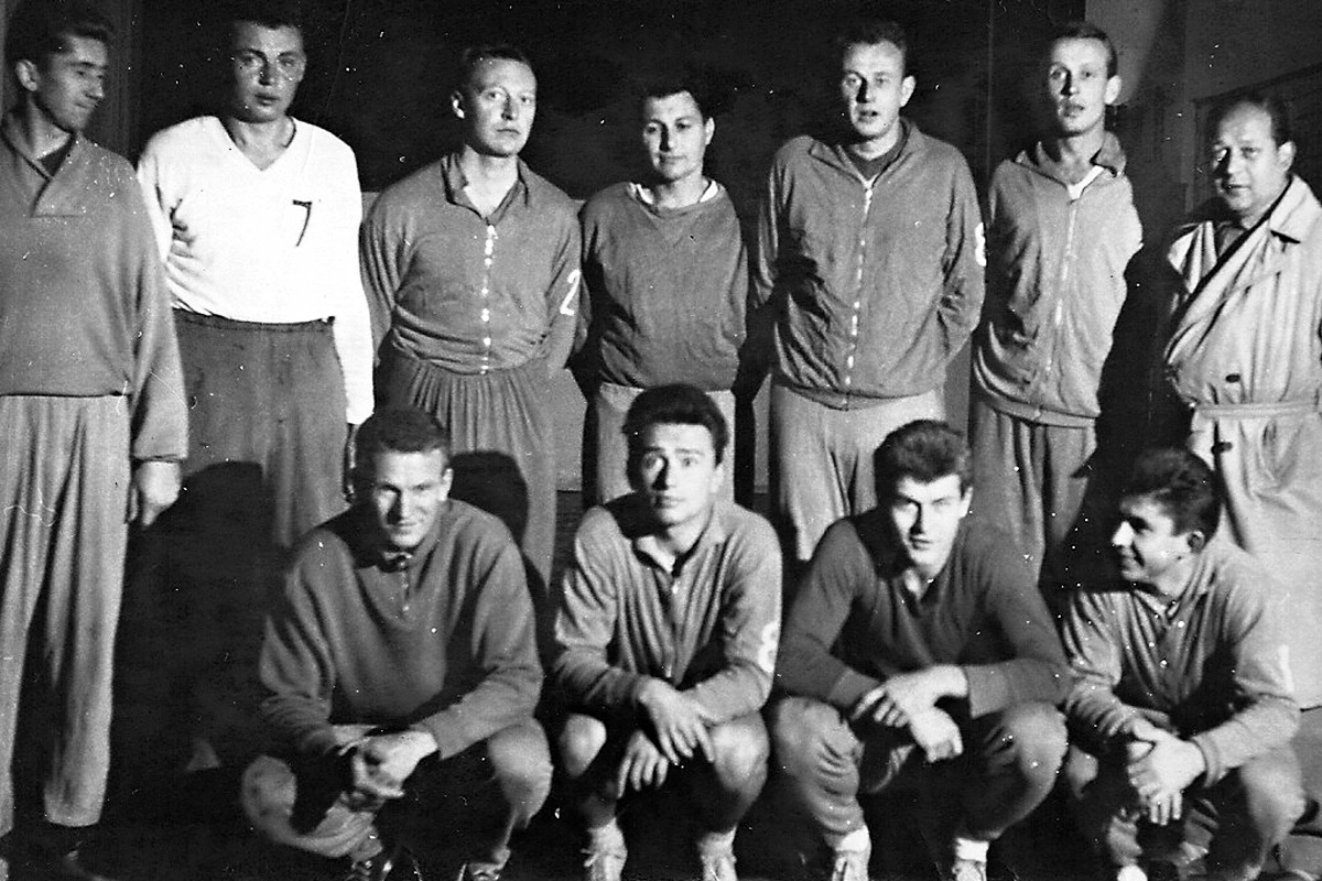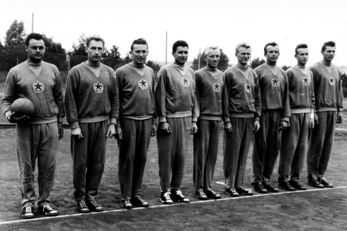Druhý snímek vznikl při soustředění RD mužů ČSR v roce 1954 v Berouně. První zleva v podřepu Jan Hondlík, nad ním stojí Karel Láznička a pamětníci mezi dalšími účastníky objeví řadu dalších legend zlaté éry našeho volejbalu: např. trenéry Kozáka a Matiáška, lékaře Chrástka, z hráčů Jonáše, Malého, Musila, Pauluse, Purnocha, Šašinku, Tesaře a další.