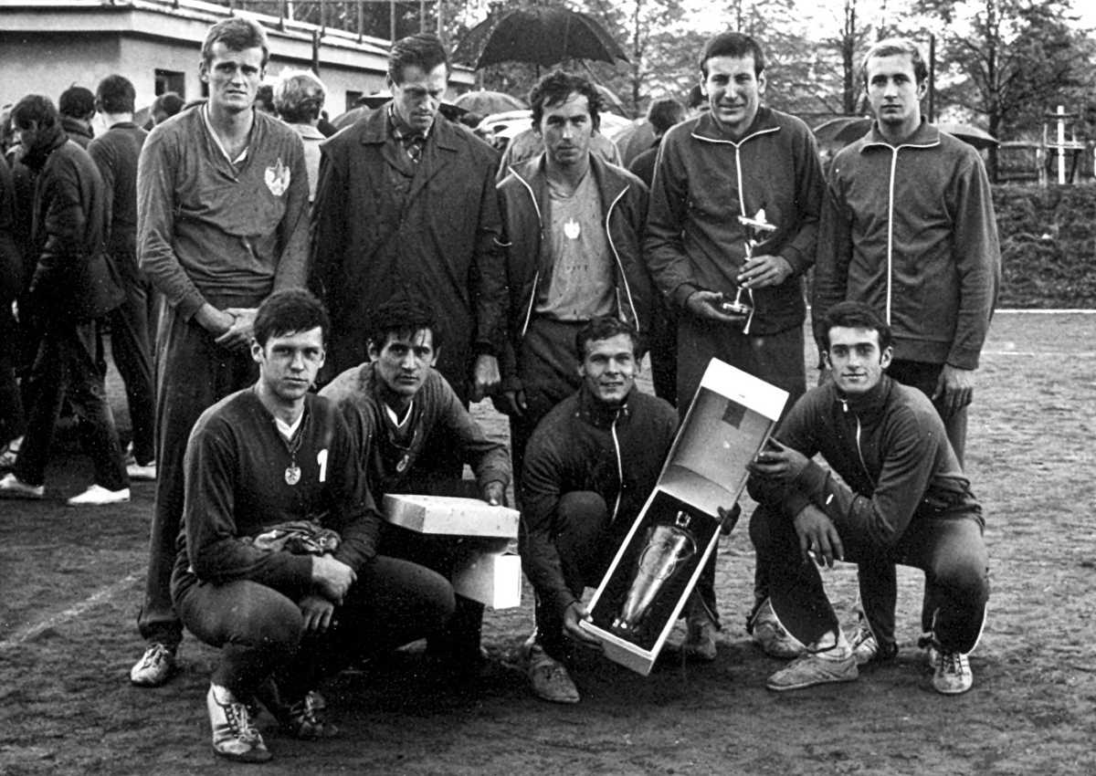 Nejstarší je z roku 1967 a na ní část týmu RH Praha v Ústí nad Orlicí po vítězství na Velké ceně orlického průmyslu. Zleva stojí Mejdr, trenér Karel Brož, Štěpánek, Vápenka a Fiala, v podřepu zleva Čermák, Mika, s trofejí Mozr a Penc.
