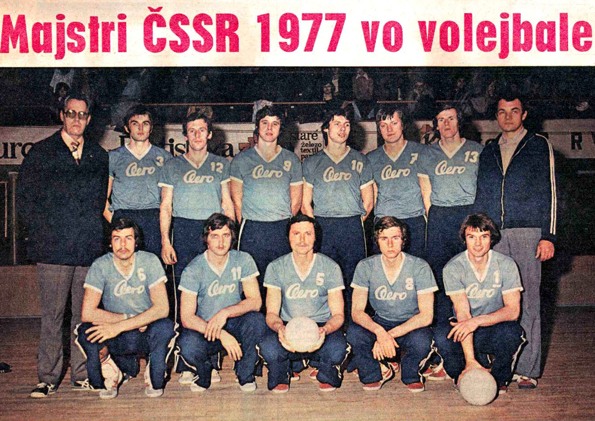 Snímek ze slovenského týdeníku ŠTART s první mistrovskou sestavou Aera Odolena Voda z roku 1977. Zleva stojí trenér E. Krob, Buman, Černý, Piškule, Špisser, Horáček, Hemr a vedoucí V. Tichý, v podřepu zleva Sýkora, Mrklas, Keller, Stehno a Nekola