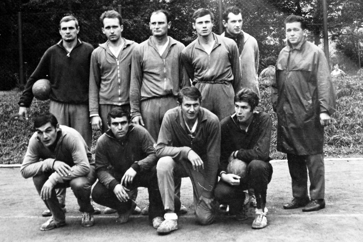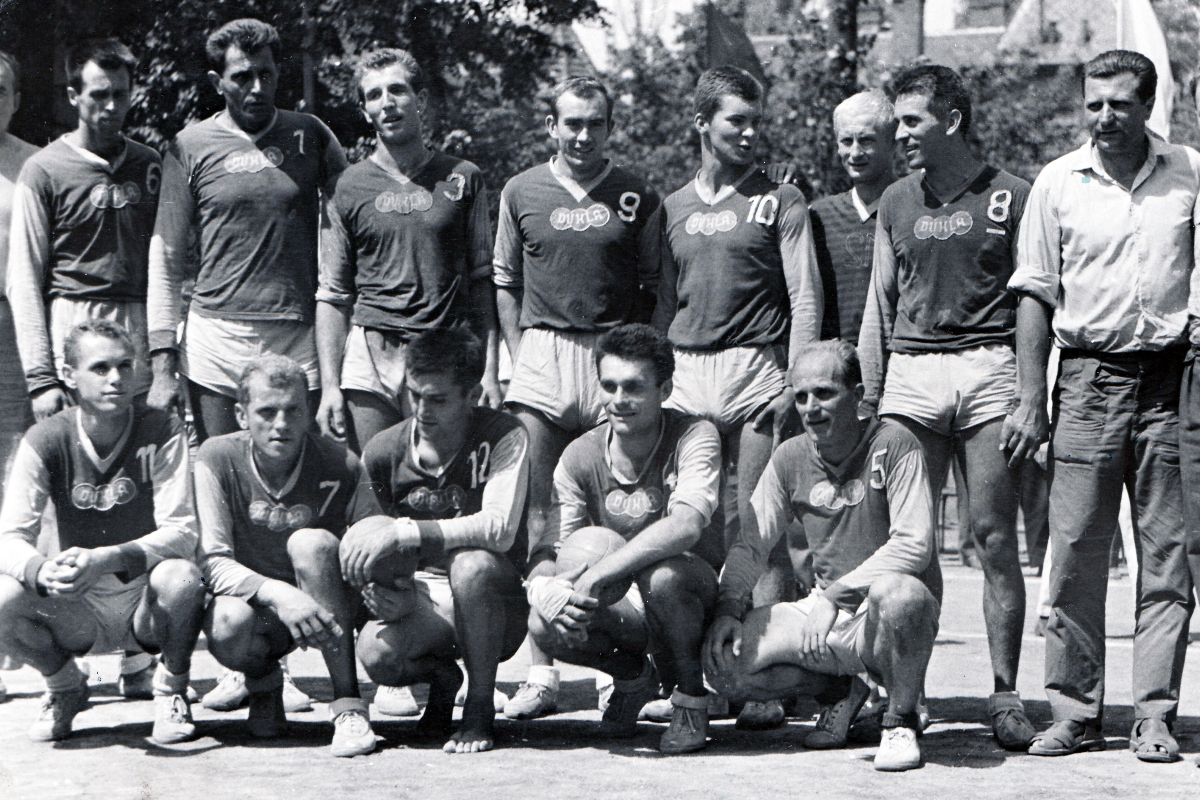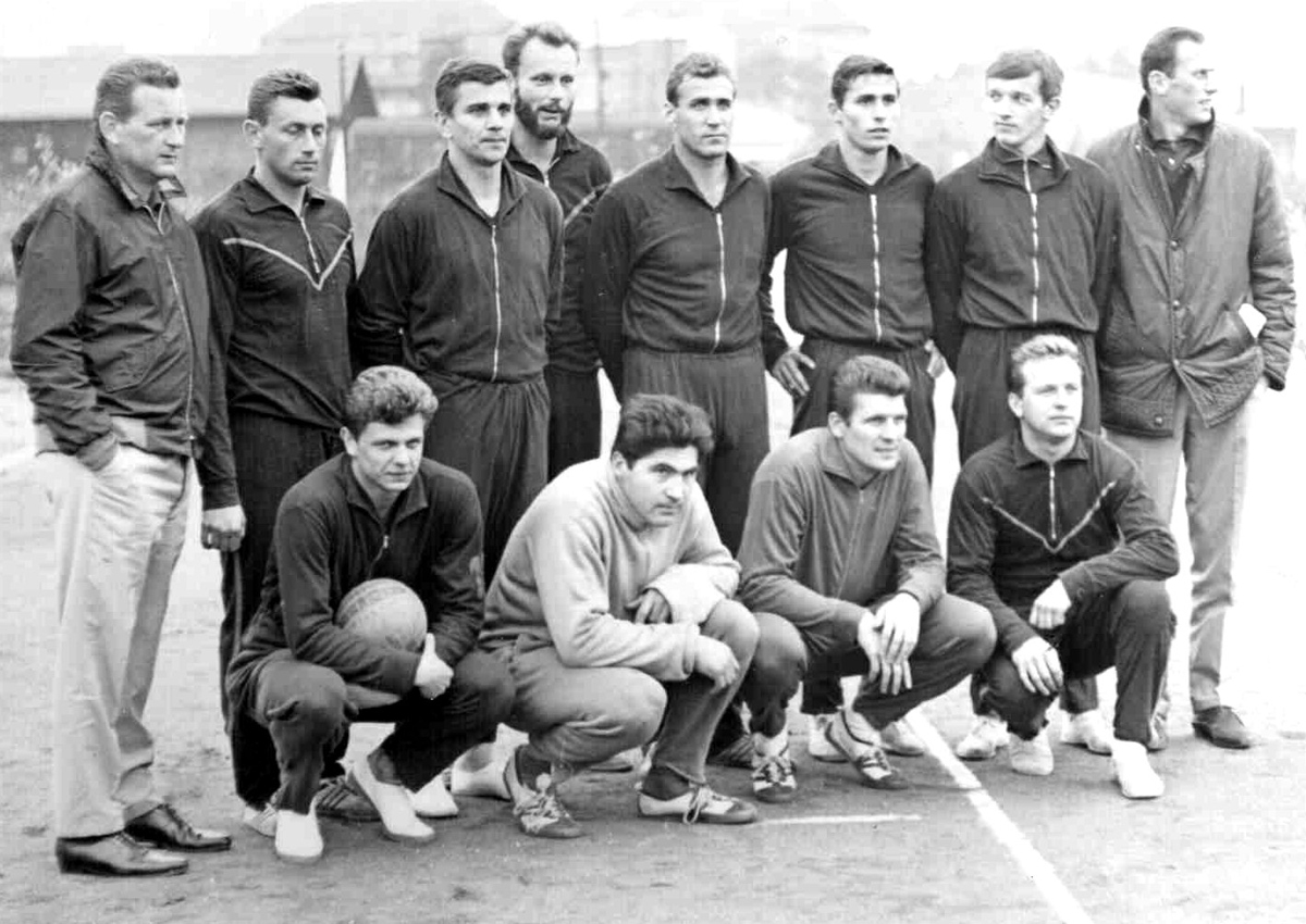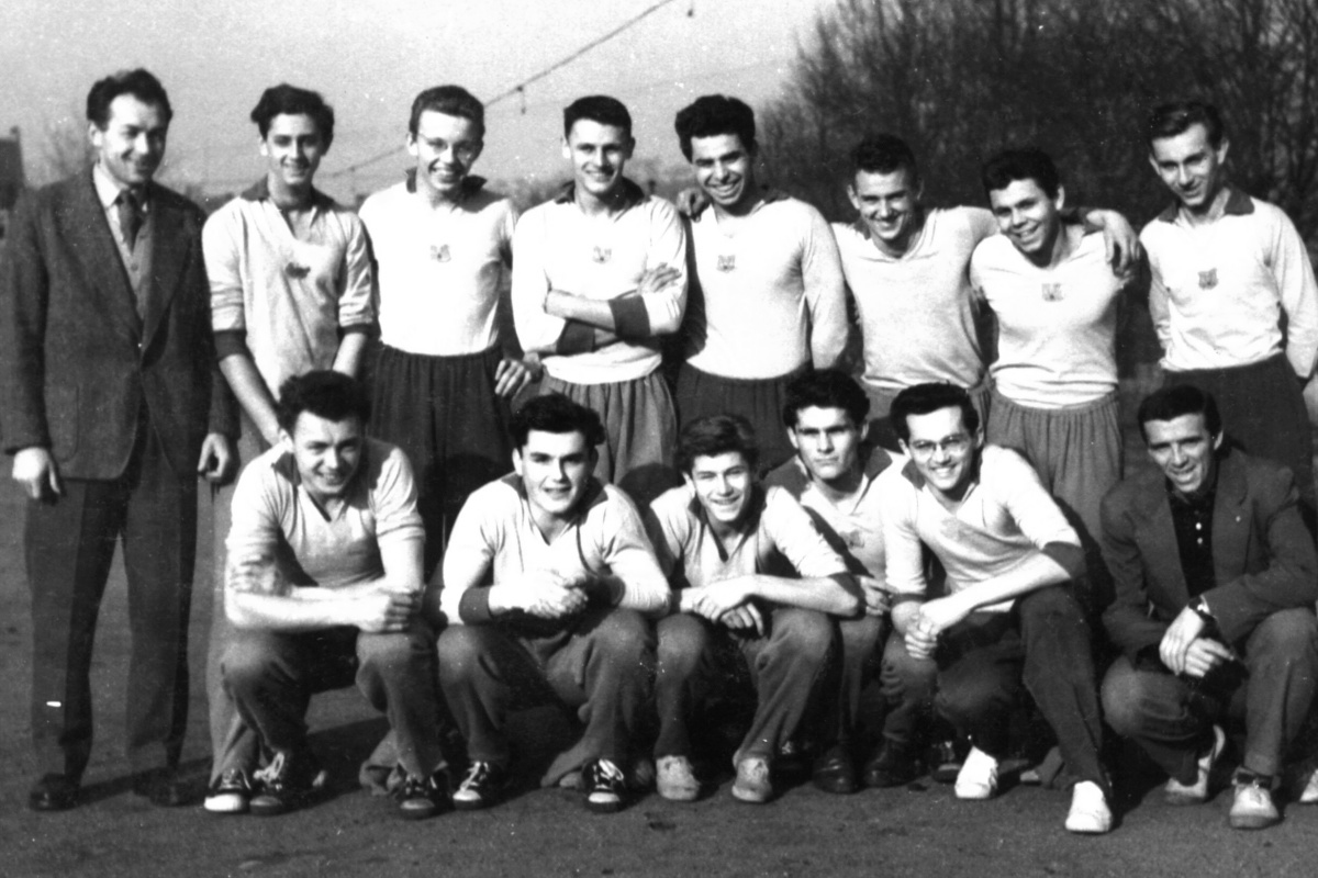 Vítězové turnaje Světového festivalu mládeže a studentstva, který v roce 1955 hostila Varšava. Zleva stojí Paulus, Musil, Toman, trenér J. Kozák, Láznička, Zdeněk Malý, Kemel a rozhodčí L. Kettner, dole zleva Golian, Kučera, Kedles, Petr, Synovec a Purnoch. Je smutné, že z této sestavy zůstává mezi živými již pouze jubilant Kedles.