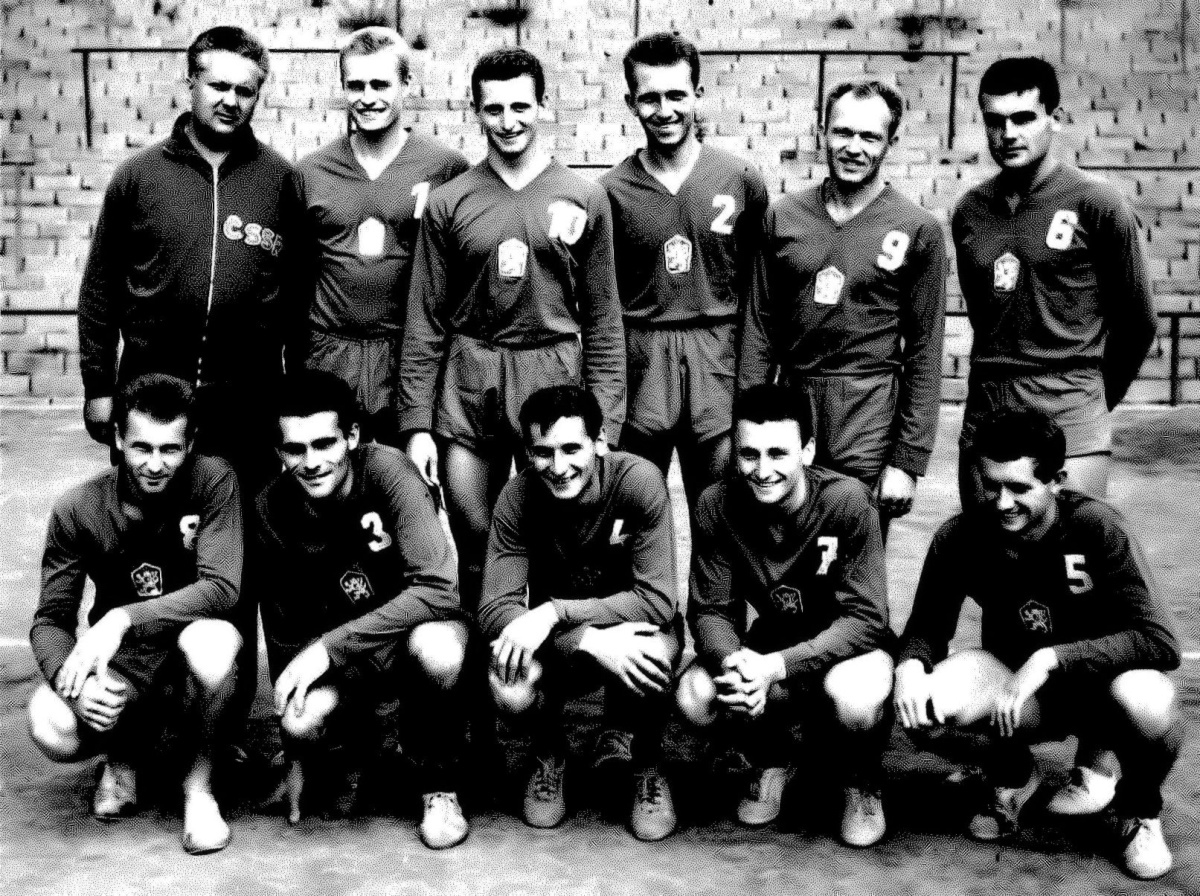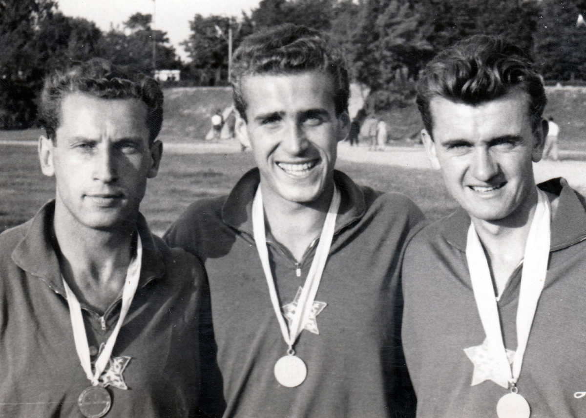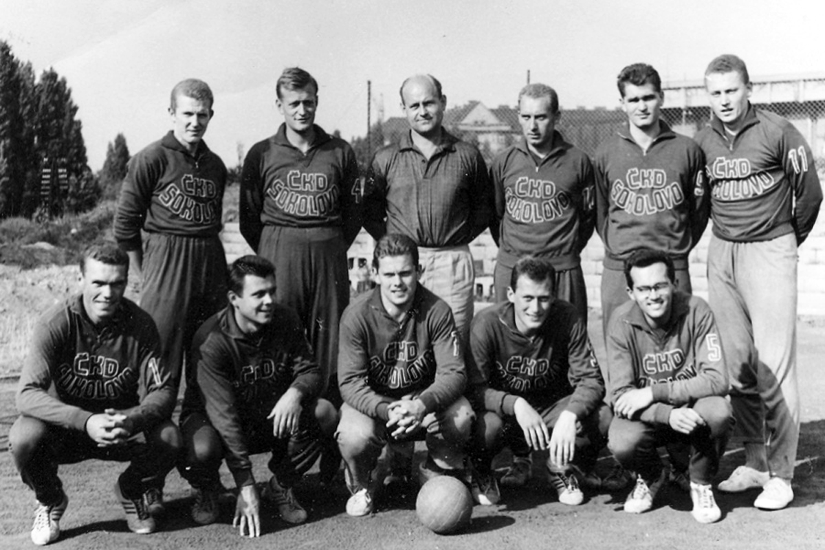 Vítězové turnaje Světového festivalu mládeže a studentstva, který v roce 1955 hostila Varšava. Zleva stojí Paulus, Musil, Toman, trenér J. Kozák, Láznička, Zdeněk Malý, Kemel a rozhodčí L. Kettner, dole zleva Golian, Kučera, Kedles, Petr, Synovec a Purnoch. Je smutné, že z této sestavy zůstává mezi živými již pouze jubilant Kedles.
