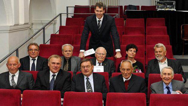 Snímek poslední je z roku 2013 a uvedení Zdeňka Pommera a dalších trenérských osobností do Síně slávy Unie profesionálních trenérů. Nad laureáty stojí předseda ČOV Jiří Kejval.