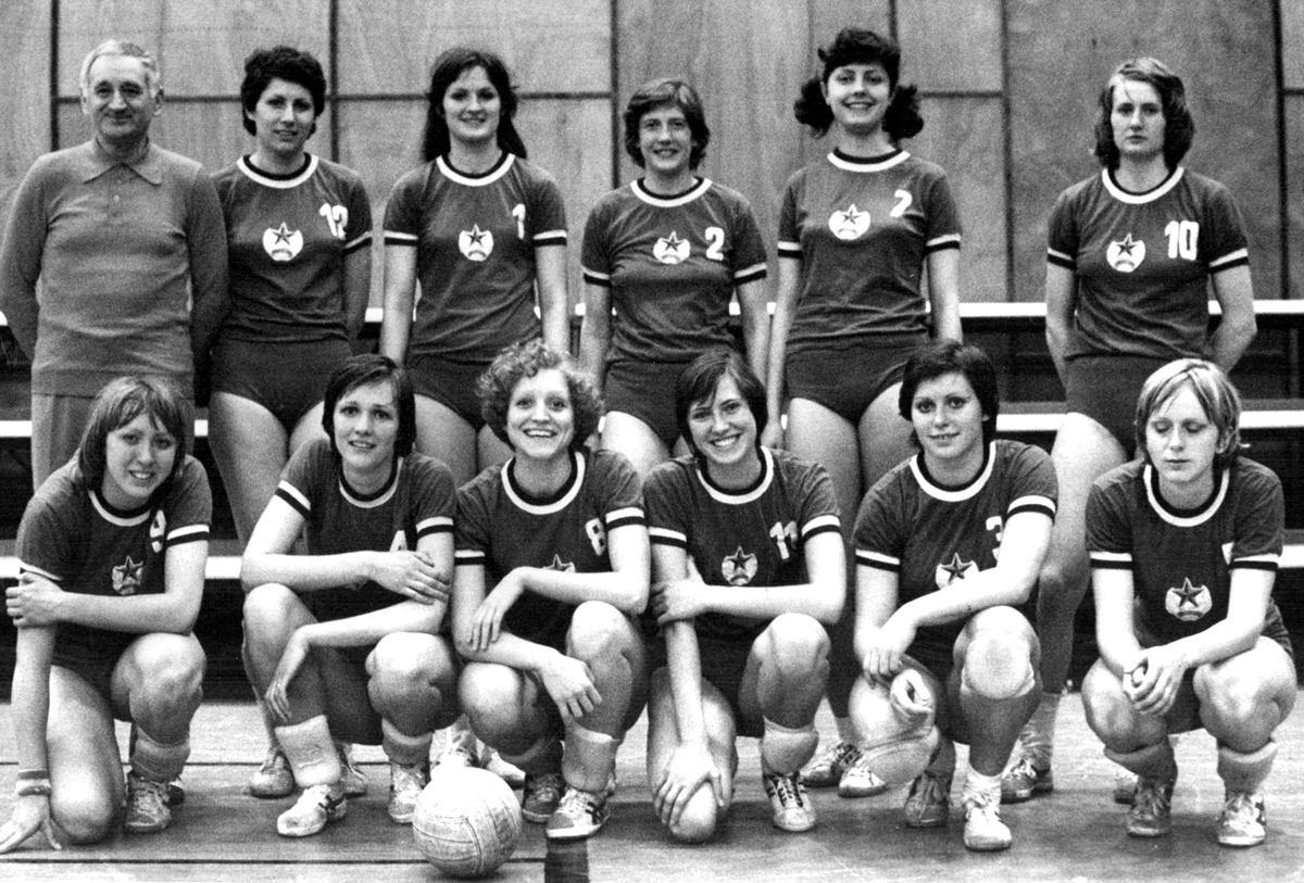 Stříbrný tým volejbalistek ČSSR v roce 1971 před startem na ME v Itálii. Zleva stojí první trenér S. Šneberger, Svobodová, Moskalová, Baniová, Mališová, Vindušková, Semecká, lékař A. Benda a druhý trenér M. Židišin, dole zleva Hübnerová, Mifková, Hálková, Vlasáková, Kodajová, Malá a Tušková (náhradnice).