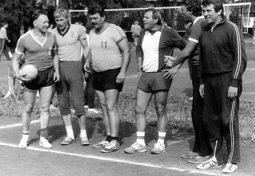 V roce 1983 si to v rámci semináře extraligových trenérů v Nymburce „rozdali“ účastníci mezi sebou. Jeden z týmů tvořili (zleva): Karel Láznička, Jirka Ebert, Zdeněk Pommer (na hlavě s dámskou koupací čepicí), Josef Smolka st., Jirka Medřický, Miloš Zika, Marcel Staša a Petr Musil (v té době na vojně u ASVS Dukla Liberec v roli metodika).