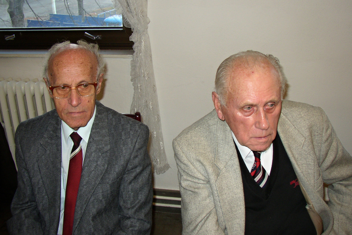Poslední snímek vznikl v roce 2006 při setkání jubilantů ČVS. Vlevo prof. Lumír Mlateček (tehdy 80 let, letos devadesátník), vpravo jubilant Ing. Augustin Tobolka, slavící 85 let.