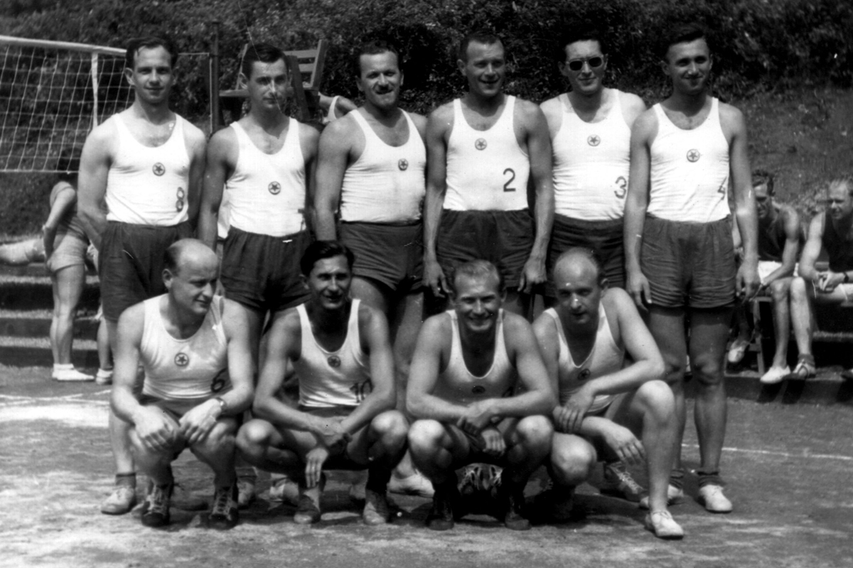 Na snímku z roku 1950 jsou volejbalisté Dynama Slavie na MR v Jilemnici, na kterém obsadily 3. místo za dalšími pražskými celky ATK a Sparta. Na snímku z Jilemnice zleva stojí Holzhauser, Soukup, Těšitel, Mikota, Koman a Hrobař, dole zleva Laštovka, Selichar, Venhač a Taubman.