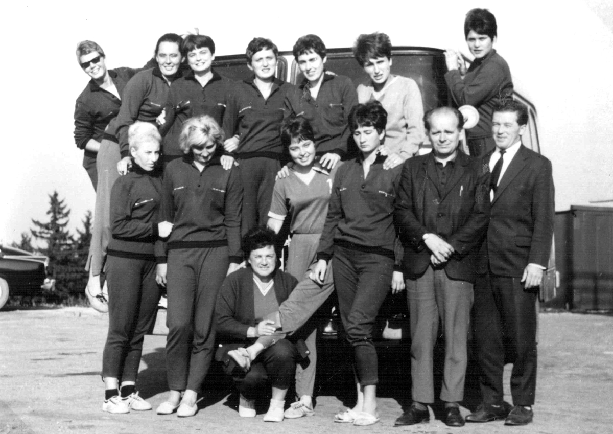 Juniorky ČSSR v roce 1968 před odletem do Sofie na mezinárodní turnaj, na kterém obsadily 2. místo po finálové prohře 2:3 se SSSR. V přední řadě zleva: druhý trenér Augustin Tobolka (viz předchozí medailonek), Baniová, Korčeková, Vindušková, Malá, Koubusová, Hádková, Procházková, Šosová, Lóhrová, Sýkorová, Paušová a první trenér Václav Hajný. V zadní řadě lékař a funkcionářský doprovod.