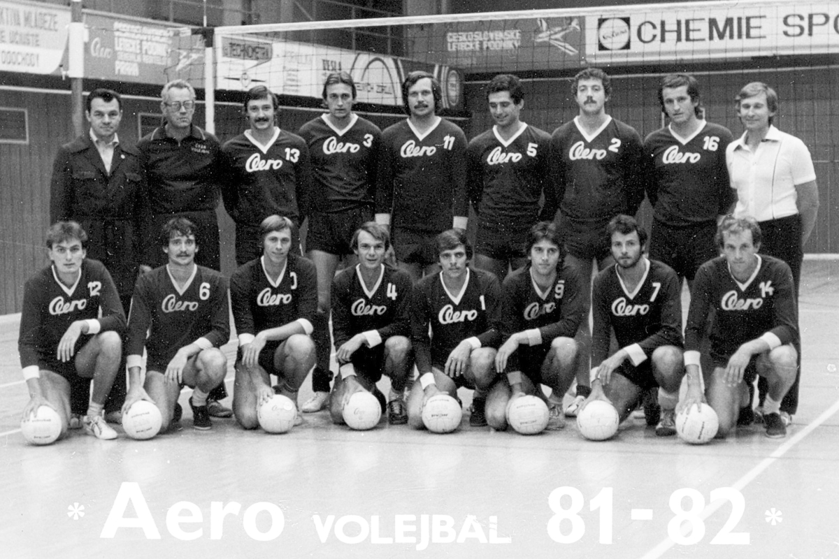 Na dalším snímku Aero Odolena Voda v sezoně 1981/82, zleva stojí vedoucí družstva V. Tichý, trenér E. Krob, Mařík, Bláha, Stančo, Kubín, Hrušovský, Homolka a as. trenéra Jiří Svoboda, v podřepu zleva Matoušek, Rajský, Bělka, Mir. Nekola, Mach, Zita, Mir. Maršoun a Neumann.