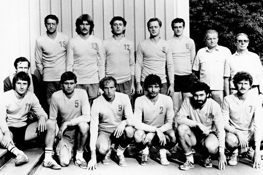Další snímek je z měsíčníku Stadion a jsou na něm volejbalisté Dukly Liberec v úspěšném roce 1983. V horní řadě zleva vedoucí družstva T. Ohnsorg, Potáč, Kovář, Smolka ml., Pavlas, Virág, Malán a trenér J. Smolka st., dole zleva Krebs, Lehnert, Hampacher, Klamrt, Špisser a Jakubíček.
