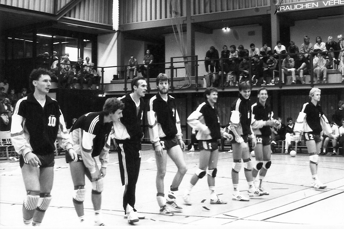 Na posledním snímku volejbalisté 1. SC Norderstedt v sezoně 1987/88, J. Špisser první zleva s č.10, třetí zprava Petr Mozr - syn trenéra A. Mozra.
