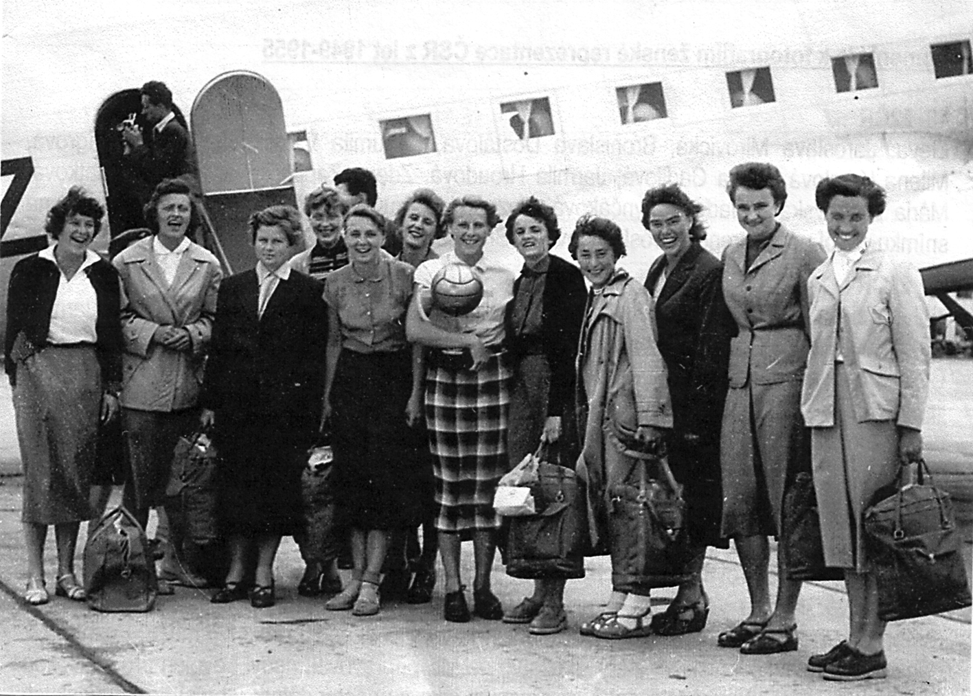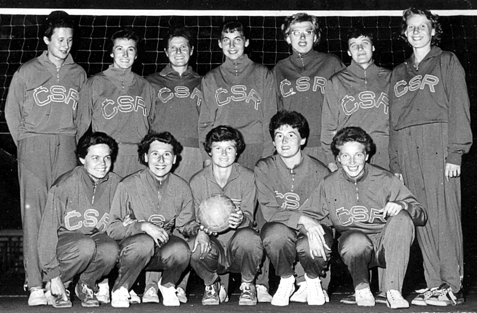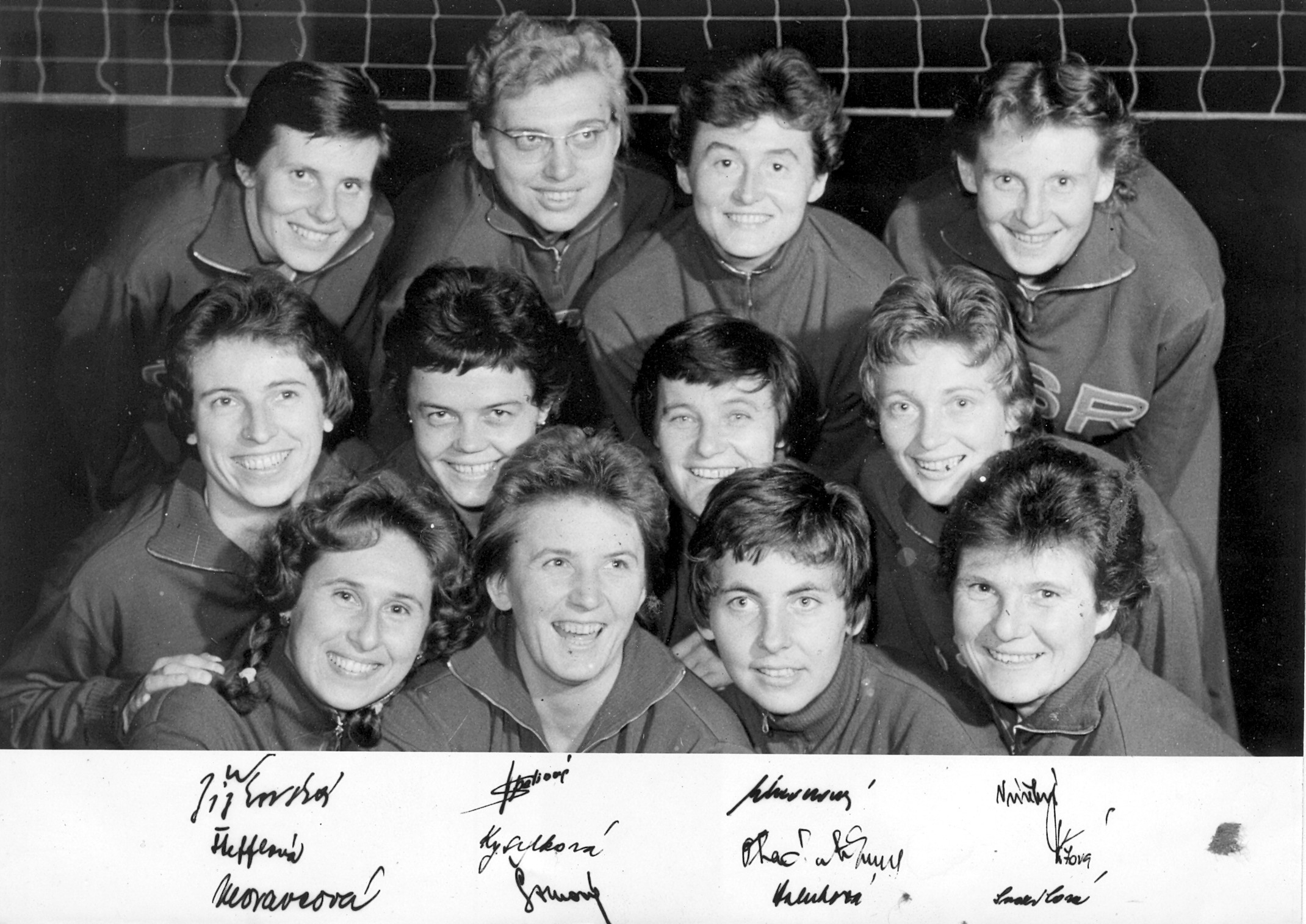 V roce 1960 naše volejbalistky startovaly na MS v Brazílii, ze skupiny (Belo Horizonte) postoupily společně se Sovětkami (a prohrou 0:3), ve finále (Rio de Janeiro) porazily Brazilky, Polky, USA a prohrály s Japonkami (1:3). Konečné 3. místo a bronzové medaile byly velkým úspěchem. Dodejme, že finálové utkání o zlato mezi Sovětkami a Japonkami (3:1) řídil náš Leopold Jebáček z Brna. Na snímku s autogramy hráček stojí v horní řadě zleva Žižkovská, Špelinová, Ulmonová a Vráželová, uprostřed Štefflová, Kyselková, Obadálková a Křížová, dole Moravcová, Šormová, Holubová a Svozilová. Družstvo na MS vedl dr. Josef Češpiva.