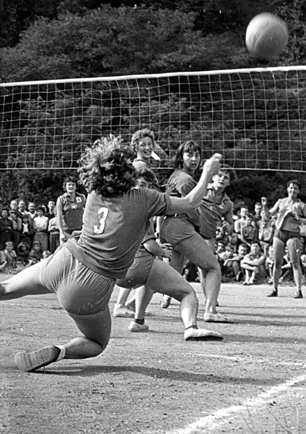 Neúspěch na MS v Moskvě naše volejbalistky odčinily stříbrnými medailemi na „domácím“ ME 1958, hraném na již zastřešeném zimním stadionu pražské Štvanice. Snímek je z přípravy družstva a na něm Svatava (č. 3) při obětavém zákroku v poli. V rámci soustředění v Dobřichovích u Prahy bylo sehráno památné a mimořádně prestižní utkání, na které žijící pamětnice dodnes vzpomínají. Střetly se v něm hráčky širšího výběru pro ME s pražskými internacionálkámi, tj. hráčkám, které měly svá reprezentační léta již za sebou (Brožová, Dostálová, Kučerová, Lútočková, Mathauserová, Nečasová). Ty neprodaly svou kůži lacino a odešly poraženy 2:3 po lítém boji a se ctí.
