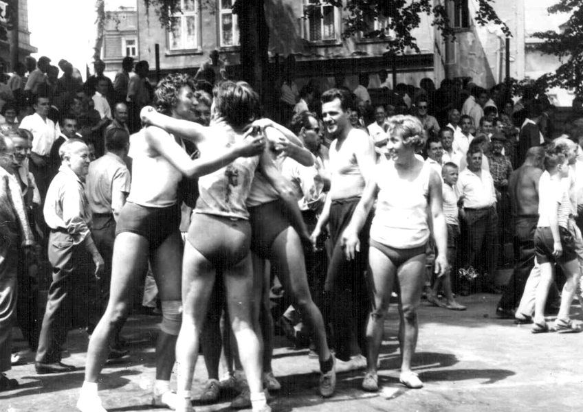 1958 první mezinárodní utkání v Jablonci s národním týmem Francie (prohra 2:3)