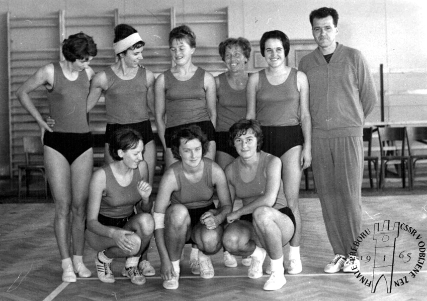 V roce 1965 slavily volejbalistky Jiskry Jablonec první velký úspěch v podobě 3. místa ve finále Mistrovství republiky v Jihlavě. Zleva stojí Kukulová, Höferová, Procházková, Šimková, Elgerová a trenér Josef Kukula, dole zleva Poláková, Štruplová a Hrádková.