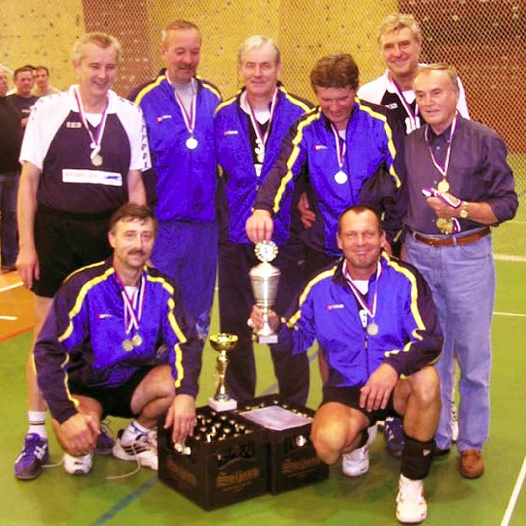 Na posledním superveteráni VK Č. Budějovice v roce 2006 po zisku druhého titulu Mistra ČR v kategorii hráčů nad 50 let. Zleva stojí Pech, Valach, Jelínek, Kopet, Pohl a vedoucí družstva Václav Drhovský, dole zleva Procházka Rostislav a Jiránek.